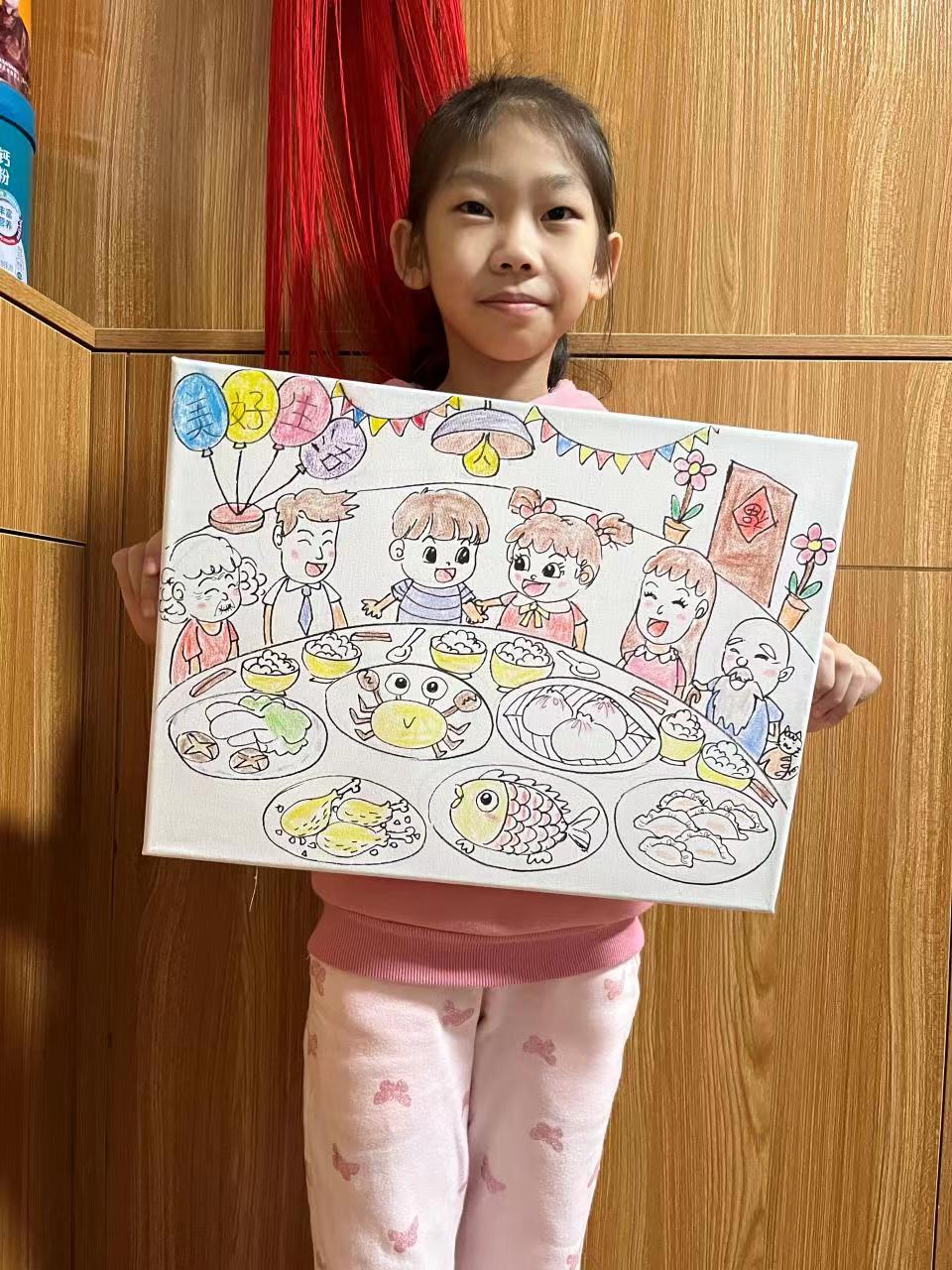 本次活动邀请了专业老师,以线上教学的方式进行亲子油画活动的创作。孩子们通过老师录制好的视频观看制作教程,分别结合“我爱深圳”“团圆饭”线框图进行创作,涂上自己心仪的颜色。经过一个多小时创作,亲子家庭完成一幅幅生动而明艳的作品,得到了授课老师一声声赞叹!