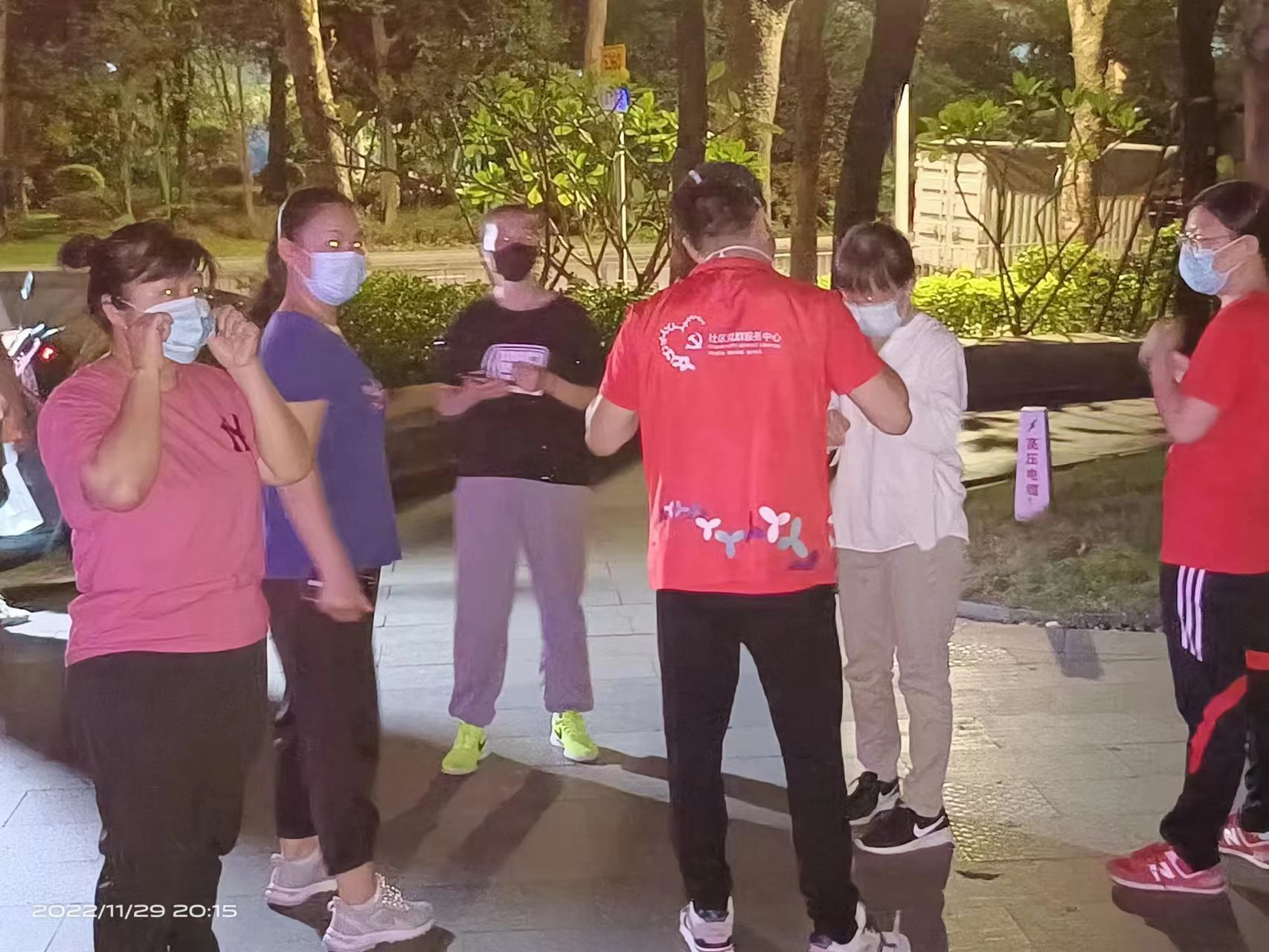 罗湖家园网讯:2022年11月29日晚,碧波社区工作人员到碧波公园劝导广场舞聚集人群,耐心讲解深圳市当前面临疫情高发的严峻形势,讲解疫情期间人员聚集的风险(曾经发生过的案例),提醒跳舞居民佩戴口罩、保持安全距离,倡导居家办公,减少社会面流动,阻断疫情传播链条。
