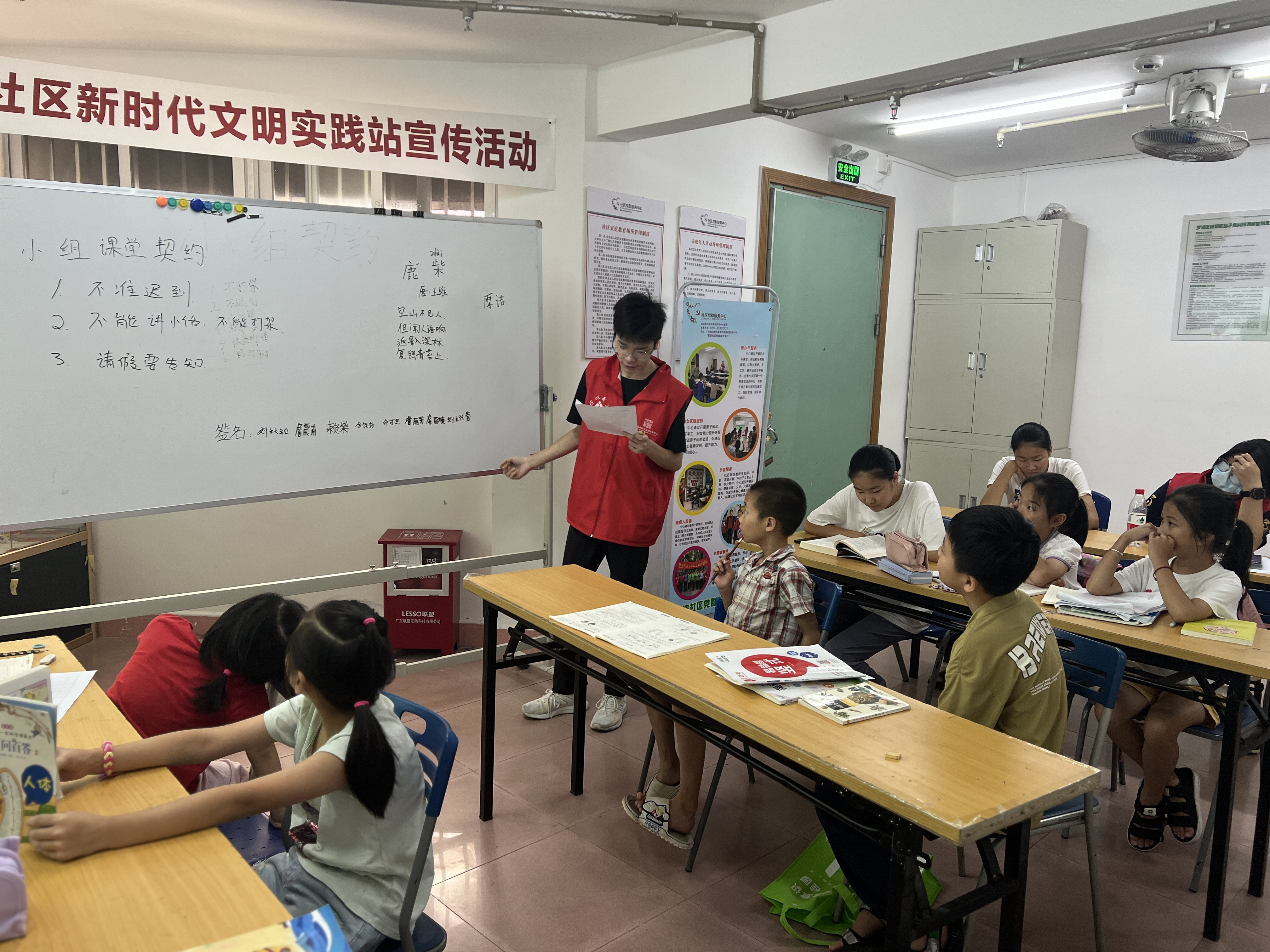 罗湖家园网讯:暑假到啦,为了有效帮助解决职工子女暑期教育监管问题,让孩子们度过一个丰富多彩、安全充实的暑假,7月25日上午,在碧波社区党委支持下,深圳市新现代社工服务中心驻碧波社区党群服务中心开展的“益童成长”碧波社区暑假互助班开课啦。