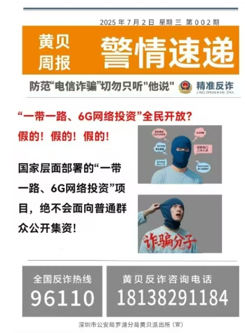 各位居民朋友,近期在辖区发现,一些群众热衷于所谓一带一路、6g网络推广等国家级战略投资项目。经核查均为诈骗,但一些群众深陷其中,请还沉迷于这些投资的群众用用自己的脑子,国家部委的文件会轻易在社会中流传吗,马上停止及时挽损,也请家里有老人长期上网课的居民朋友留意老人上课的内容,此类诈骗最长铺垫的时间长达4年,洗脑时间长,很难劝醒。不要到最后被骗了精光才后悔莫及。