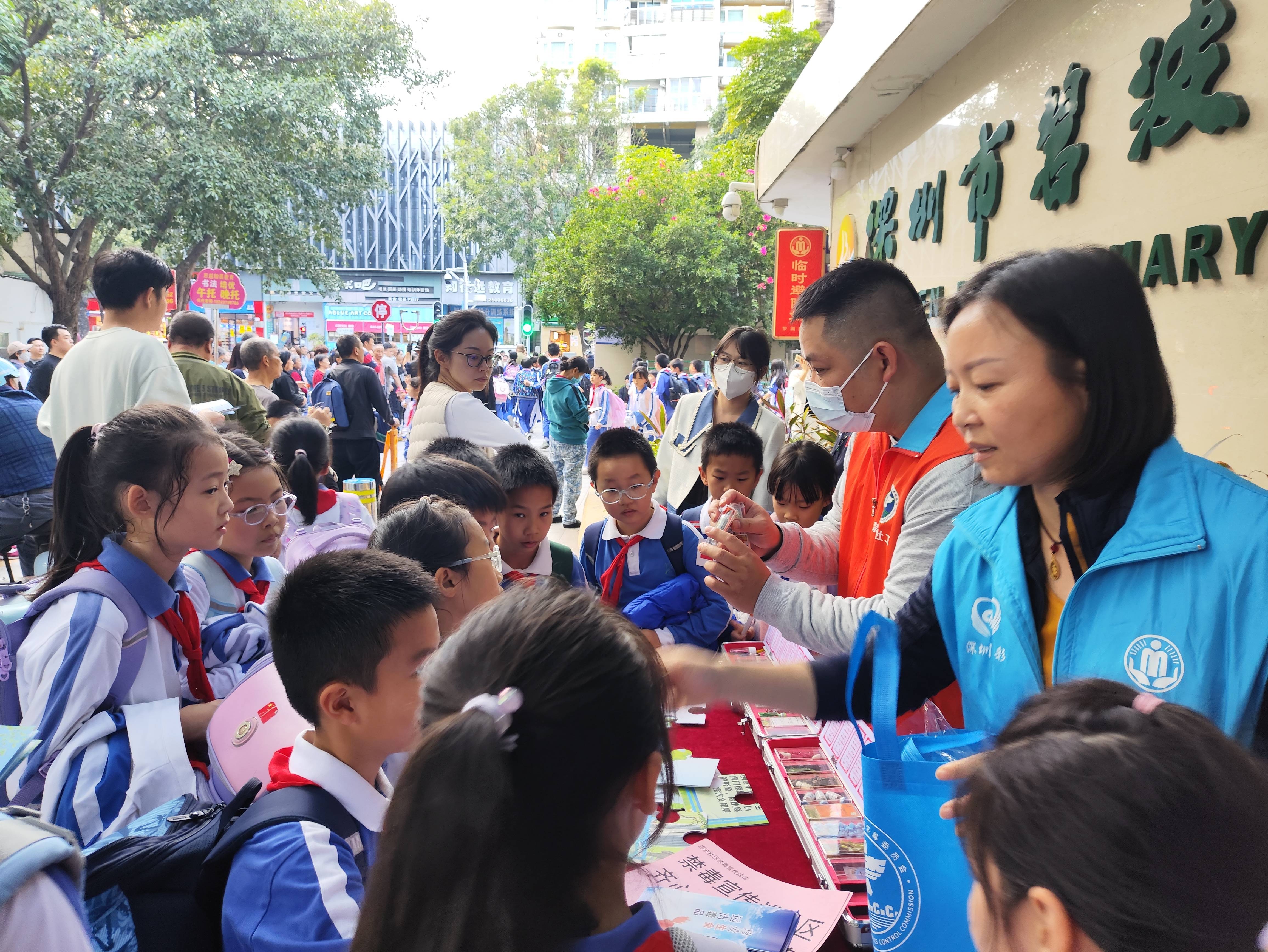 罗湖家园网讯:为进一步增强青少年识毒、防毒、拒毒意识,筑牢校园禁毒防线,2025年12月11日下午,碧波社区党群服务中心联合黄贝街道禁毒办在碧波社区党群服务中心在碧波小学门口开展“齐心共筑防毒墙”禁毒宣传活动,通过实物模型展示、互动游戏、知识讲解等多元形式,向学生及家长普及防毒拒毒知识,现场学生围绕止咳水、笑气、感冒药等“身边物品”抛出的系列疑问,成为本次宣传活动的重点解答方向,切实破解青少年禁毒认知核心盲区。