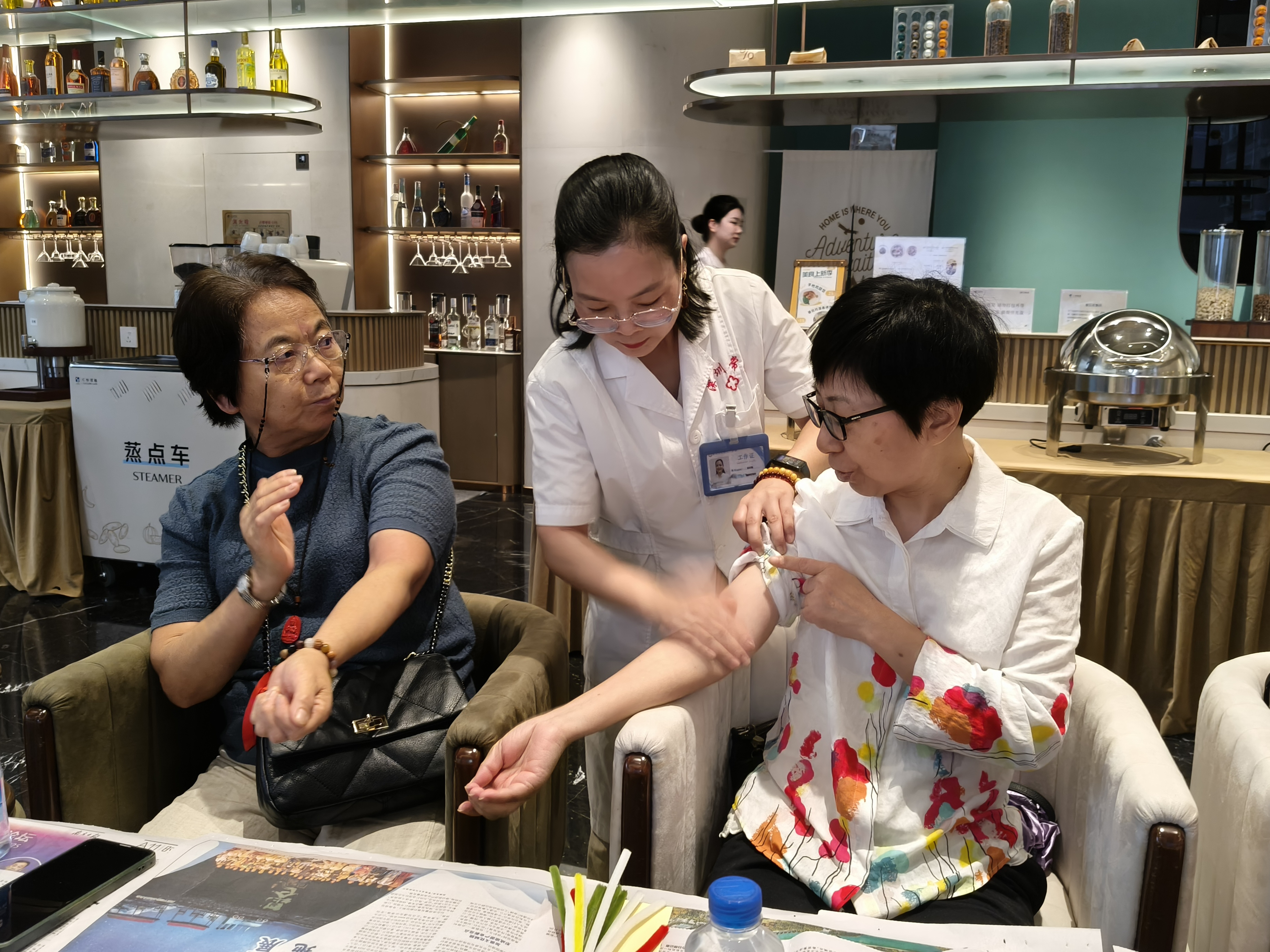 活动伊始,常安润生门诊邱医生以端午养生习俗为切入点,详细讲解了饮食养生知识,并深入介绍心包经的作用与原理。随后,邱医生现场示范拍打心包经的正确方法,指导长者们进行实践操作,帮助他们掌握这一保健技能。