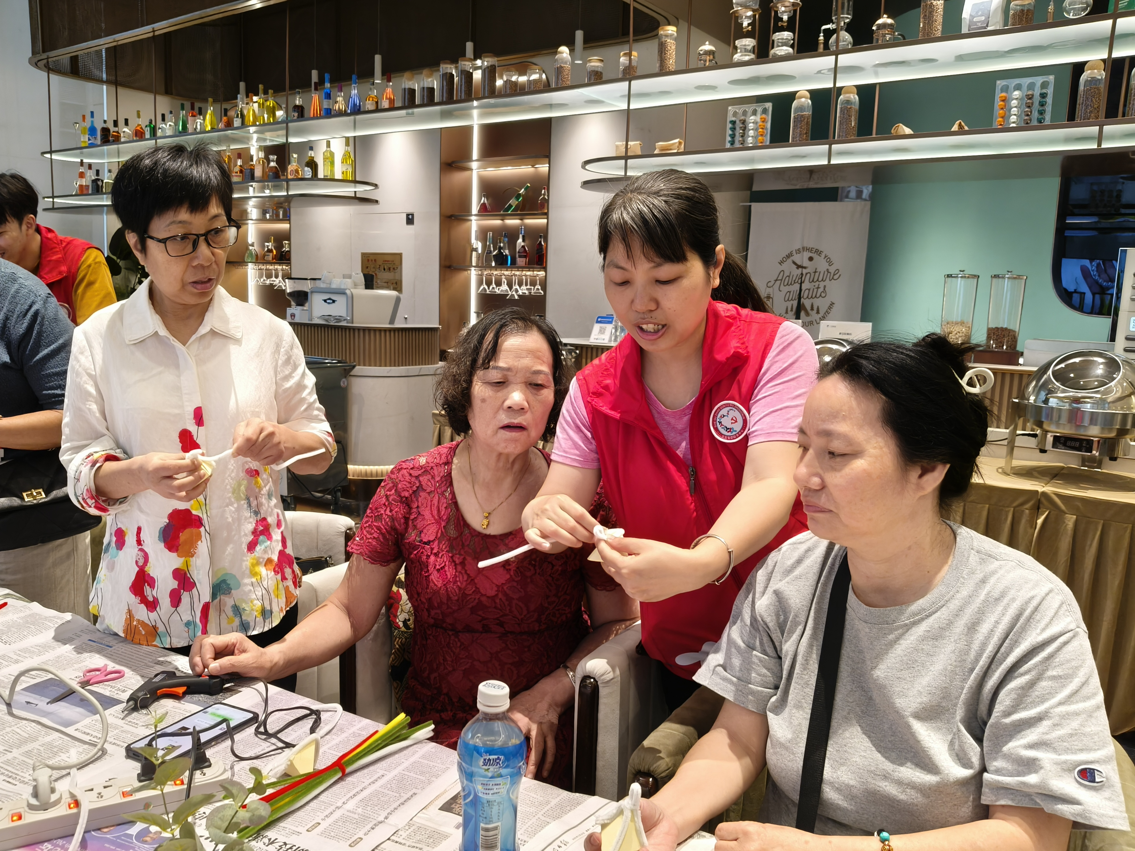 罗湖家园网讯:为弘扬中华传统文化,满足社区长者健康养生与文化娱乐需求,5 月 29 日下午,东西方驻凤凰社区党群服务中心社工团队联合常安润生门诊中医科、深之源物业服务中心在仁恒大厦二楼开展 “我们的节日・端午节” 主题活动。