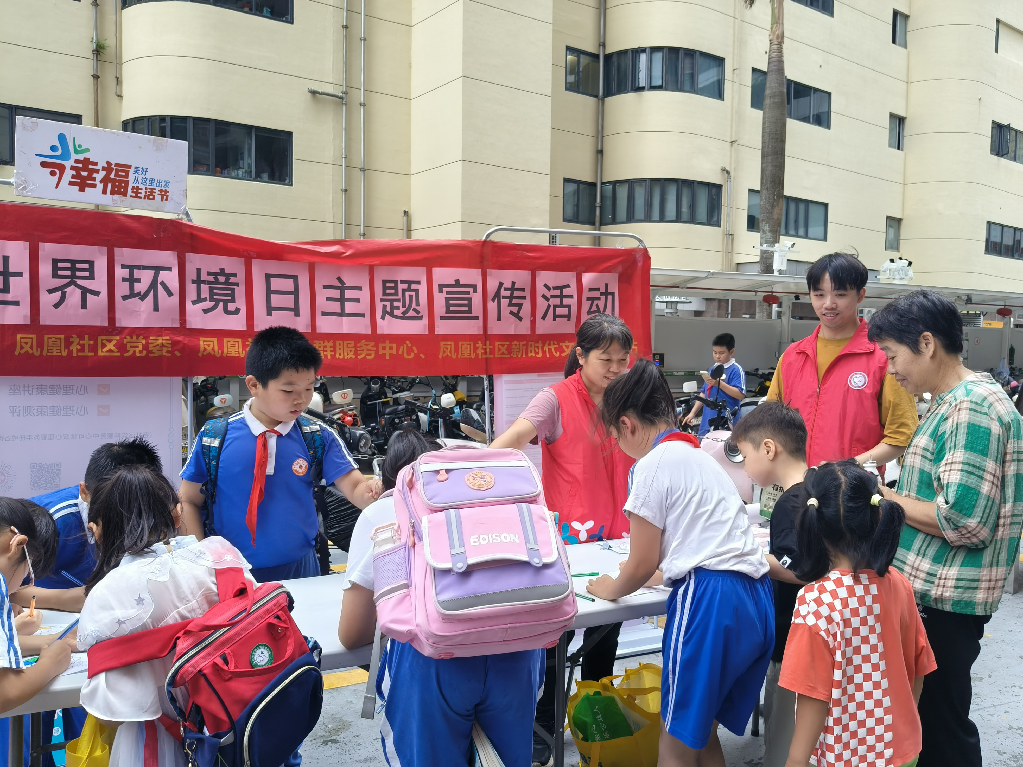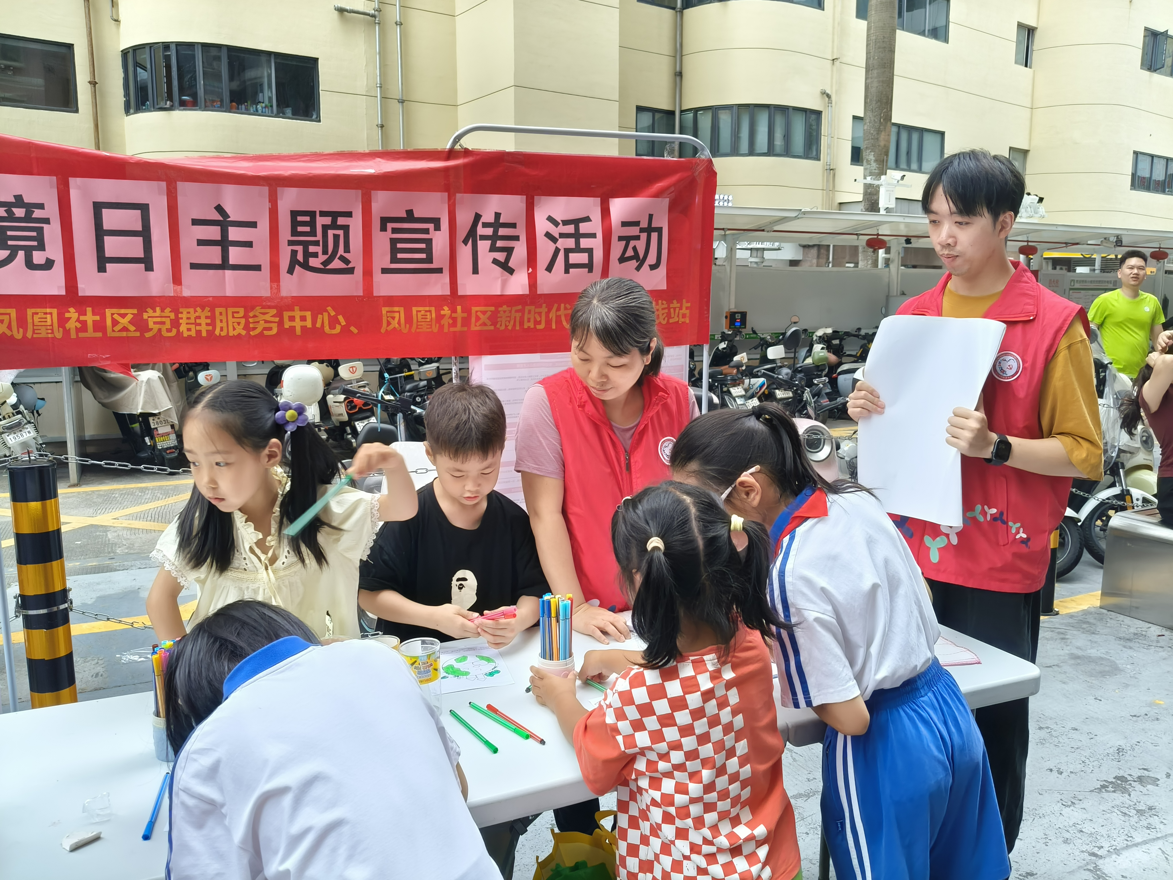 罗湖家园网讯:为了呼吁公众关注环境问题,践行绿色生活方式,6月5日下午,在凤凰社区党委的统筹领导下,东西方社工服务社驻凤凰社区社工在海珑华苑广场开展了世界环境日主题宣传活动。吸引了众多居民参与,共绘绿色环保家园。