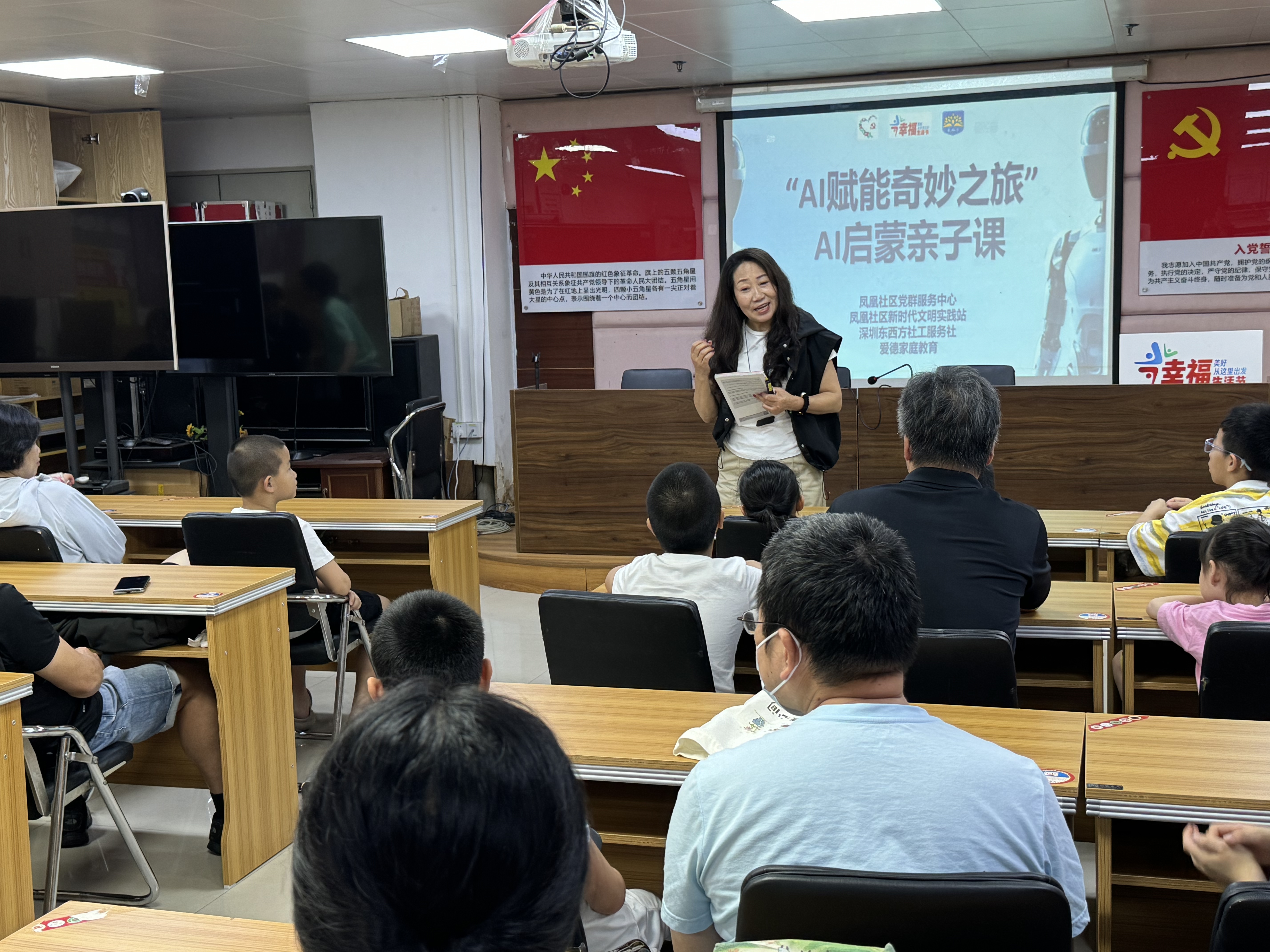 罗湖家园网讯:为提升亲子家庭对人工智能的认知,激发辖区亲子家庭科技创新思维。在凤凰社区党委的统筹领导下,东西方社工服务社驻凤凰社区社工于2025年6月7日开展“AI赋能奇妙之旅”ai启蒙亲子课。