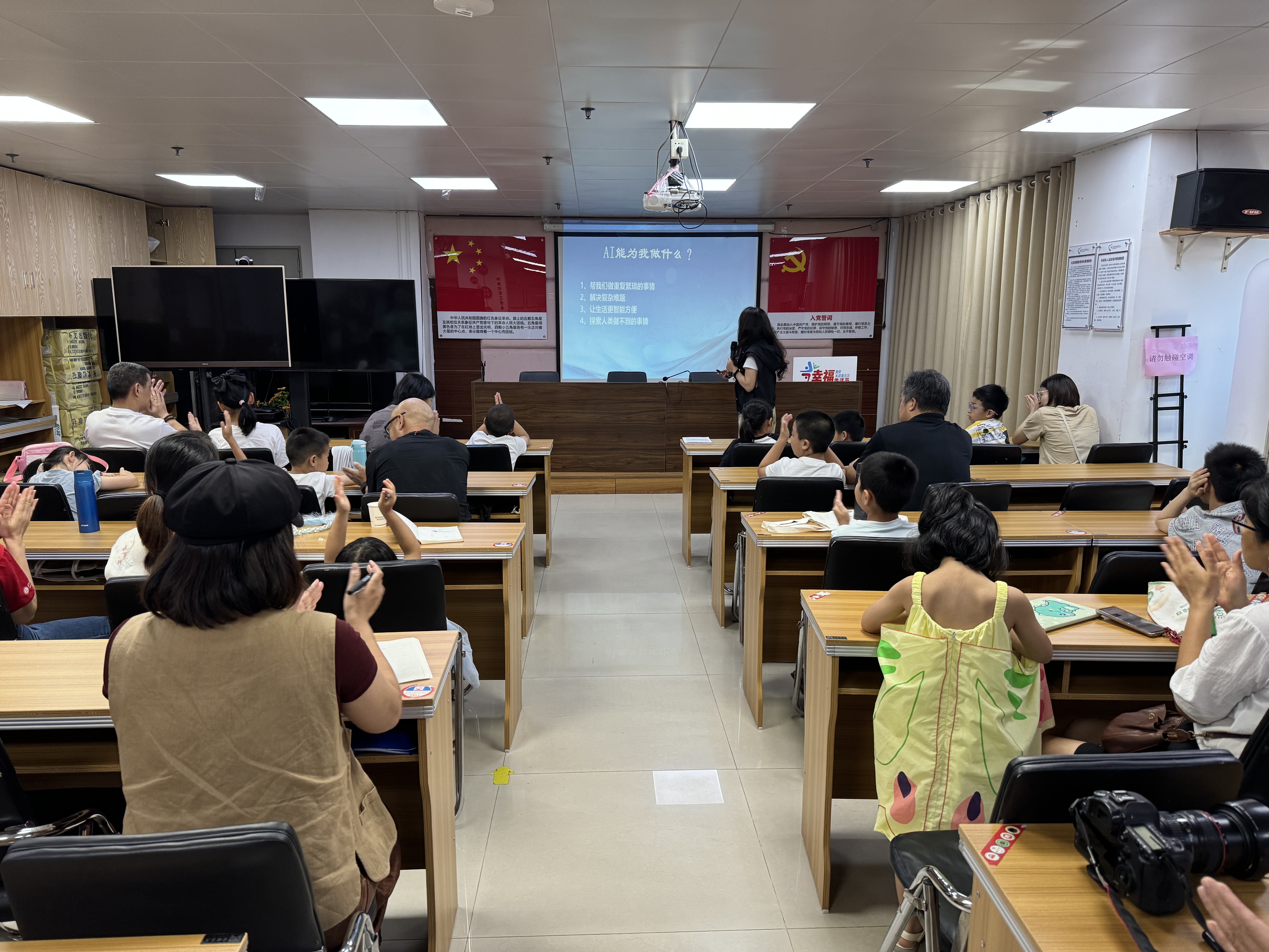 活动现场,讲师通过通俗易懂的方式向家长和孩子介绍 AI 的基本概念,把复杂的科技原理转化为孩子们听得懂、感兴趣的知识。同时,设计了一系列互动游戏,让亲子家庭在轻松愉快的氛围中,深入感受人工智能的魅力。