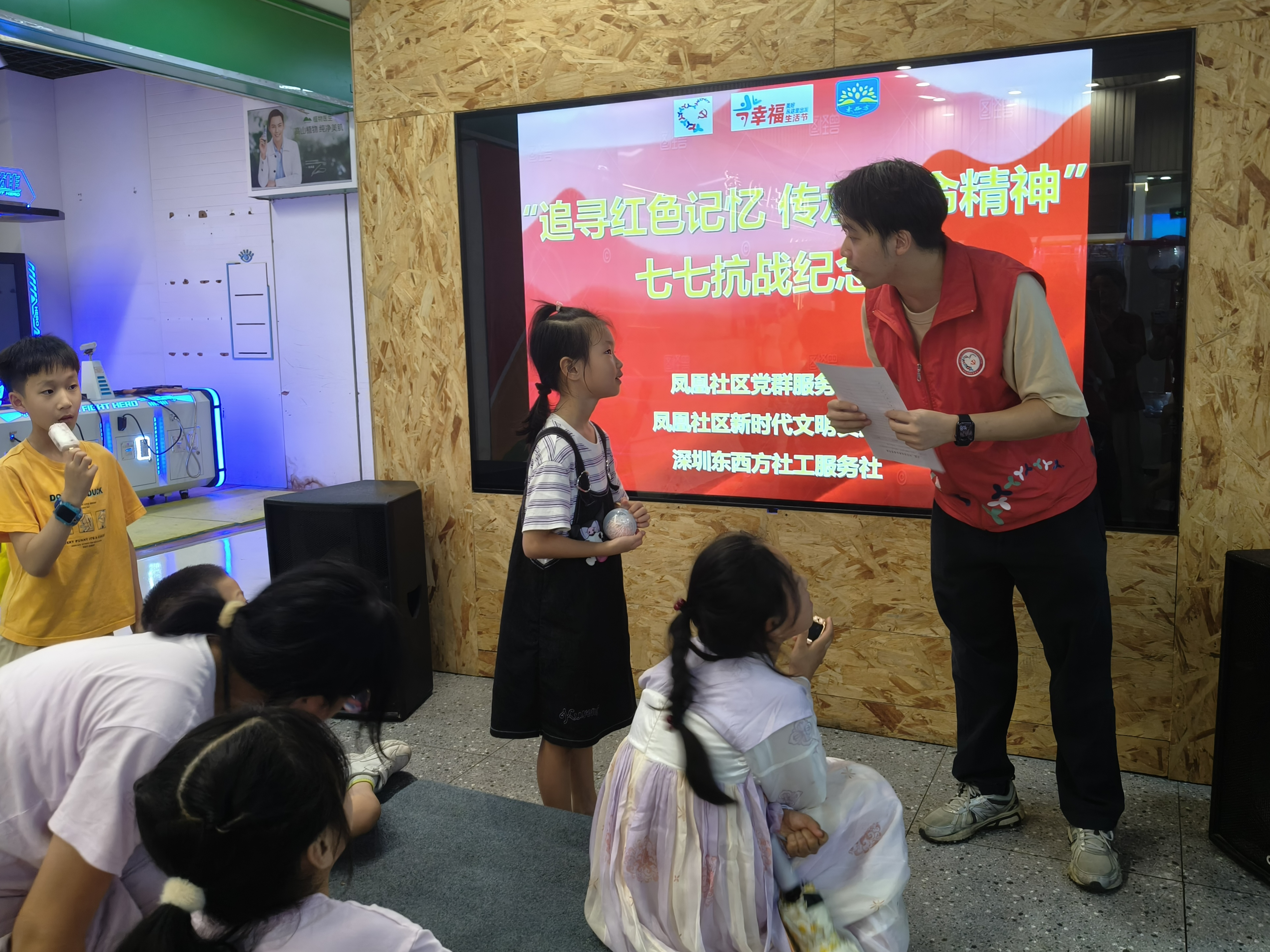 罗湖家园网讯:为纪念全民族抗战爆发 88 周年,传承红色基因,弘扬爱国主义精神,激发实现中华民族伟大复兴中国梦的强大精神力量,2025年7月4日下午,在凤凰社区党委的统筹领导下,东西方社工服务社驻凤凰社区社工开展“追寻红色记忆 传承革命精神”七七抗战纪念日。