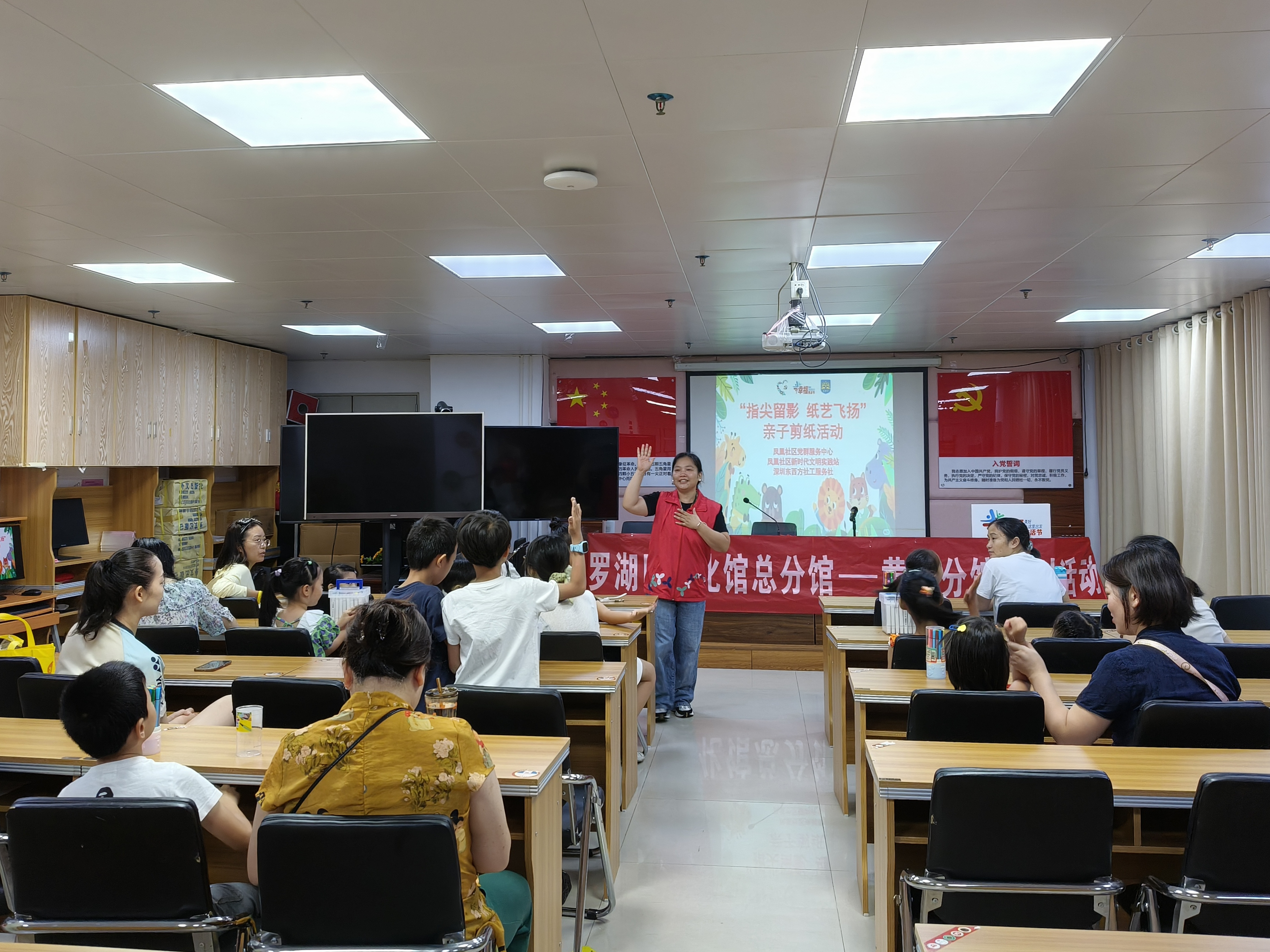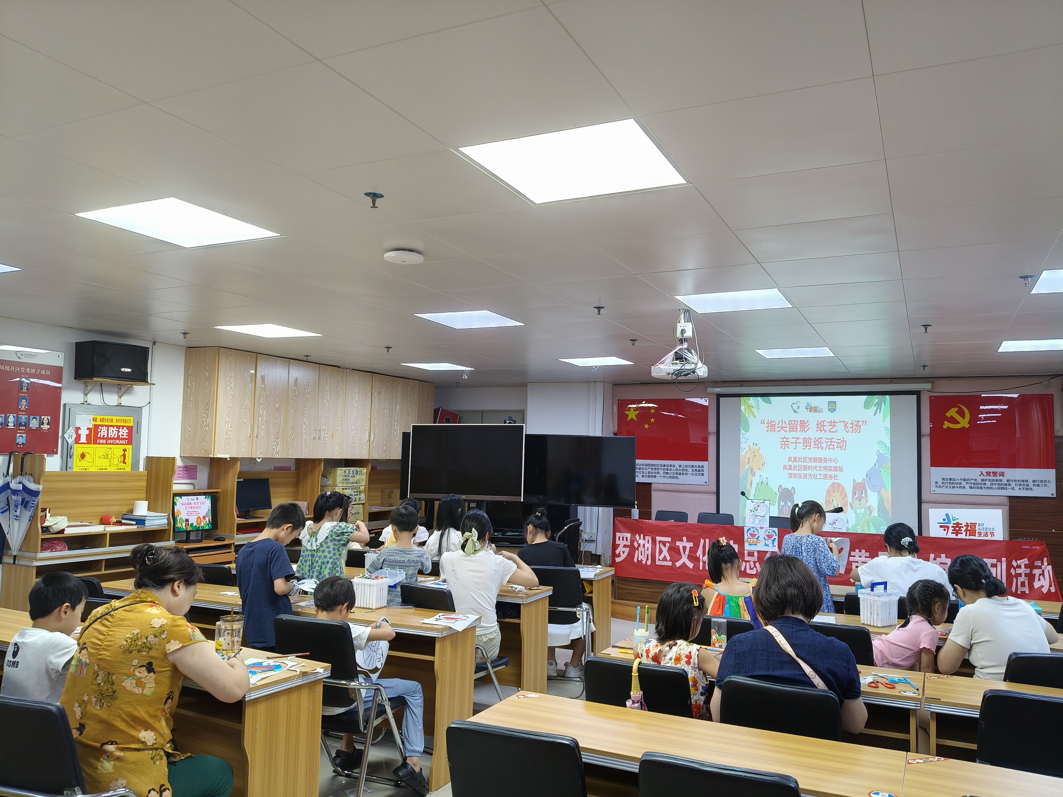 罗湖家园网讯:2025年7月12日上午,凤凰社区新时代文明实践站内热闹非凡,由凤凰社区党委统筹领导,凤凰社区党群服务中心社工开展的“指尖留影 纸艺飞扬”亲子剪纸活动在此正式启动,吸引了9对亲子家庭热情参与。此次活动旨在通过亲子创意手工剪纸,增进家庭亲子间的互动合作,密切情感交流,同时着力培养孩子们的创造力、艺术审美及动手实践能力。