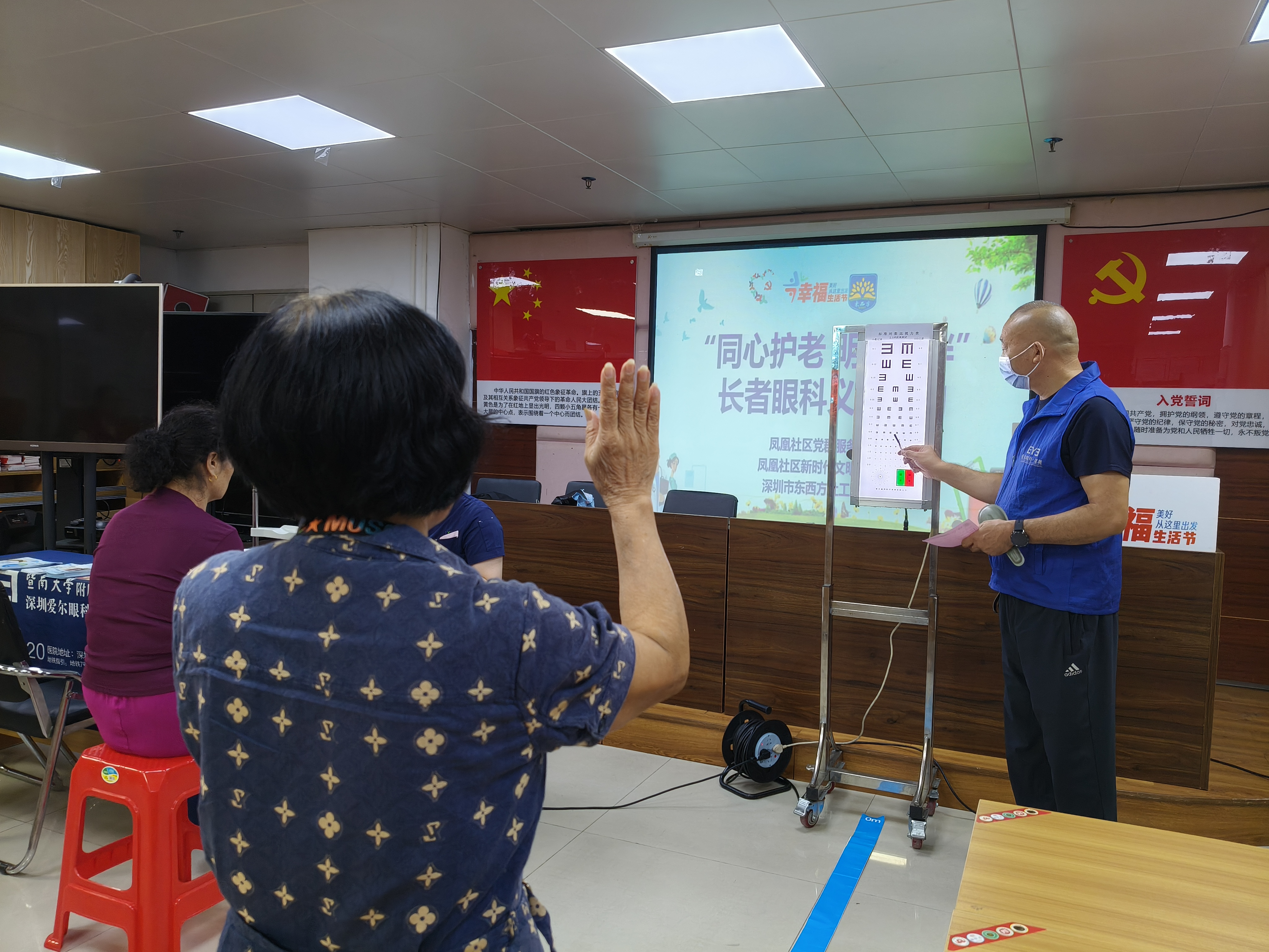 罗湖家园网讯:2025年8月8日上午,东西方驻凤凰社区党群服务中心社工团队联合深圳市爱尔眼科医院在凤凰社区新时代文明实践站开展“同心护老 明眸相伴”长者眼科义诊活动,为社区长者提供免费便捷的眼部检查,提升其护眼意识,助力及时发现眼部问题并获取专业指导。