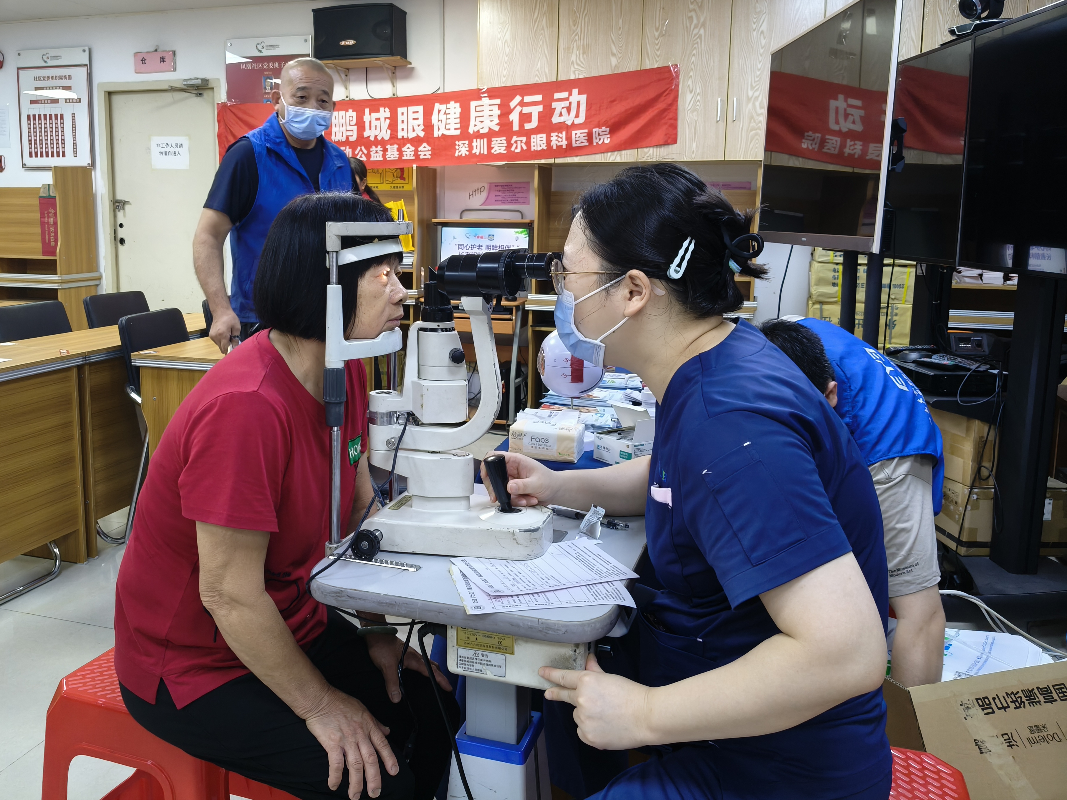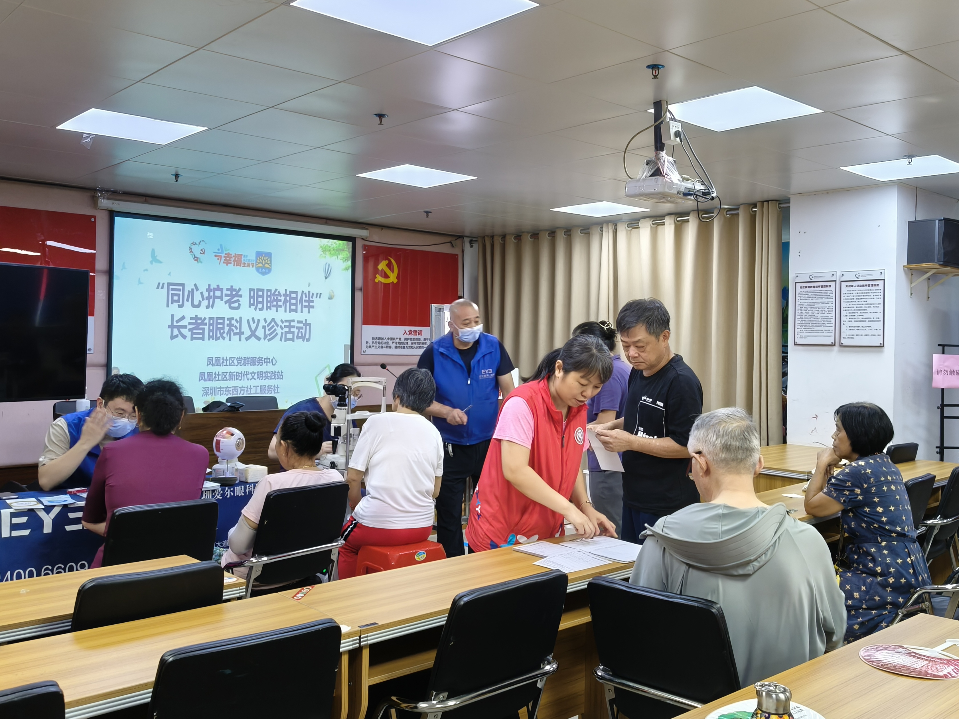 罗湖家园网讯:2025年8月8日上午,东西方驻凤凰社区党群服务中心社工团队联合深圳市爱尔眼科医院在凤凰社区新时代文明实践站开展“同心护老 明眸相伴”长者眼科义诊活动,为社区长者提供免费便捷的眼部检查,提升其护眼意识,助力及时发现眼部问题并获取专业指导。