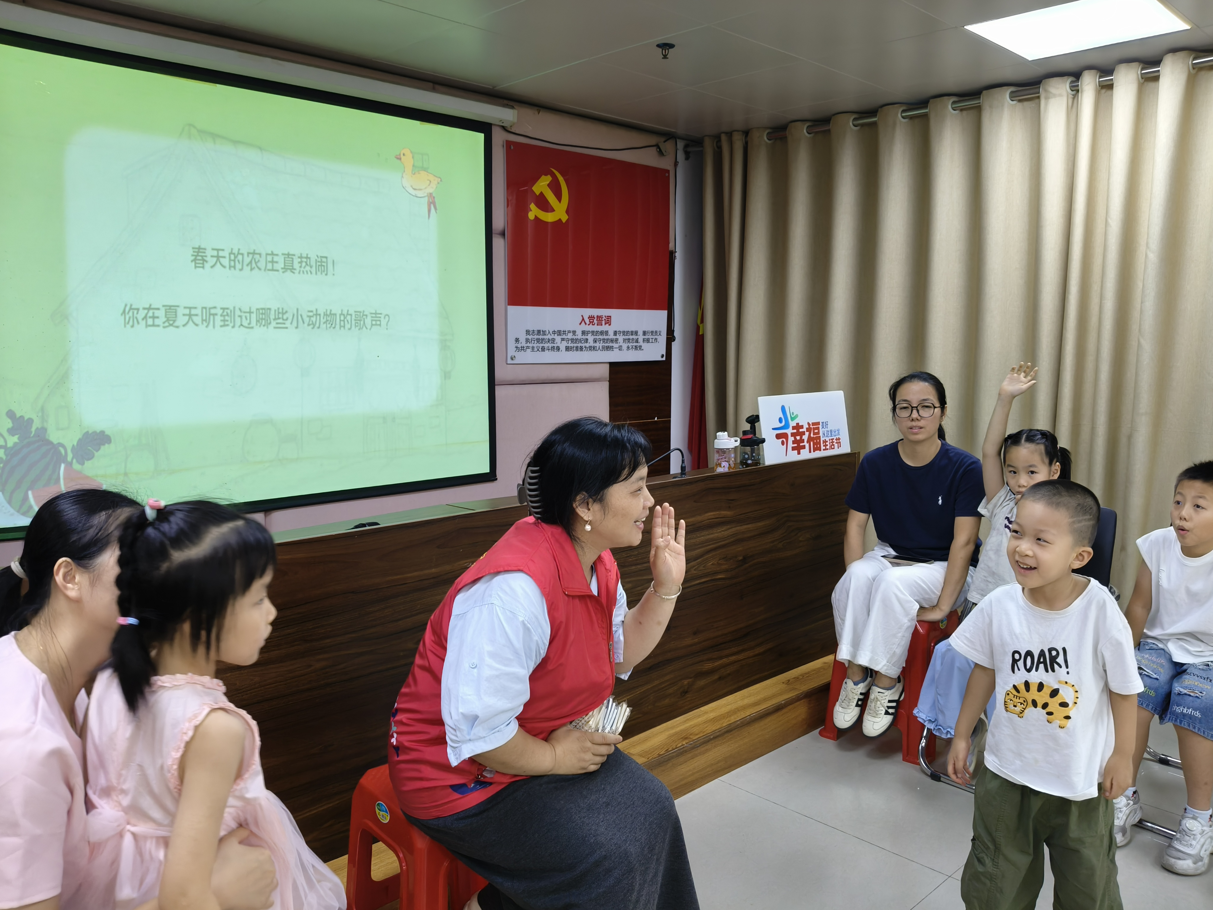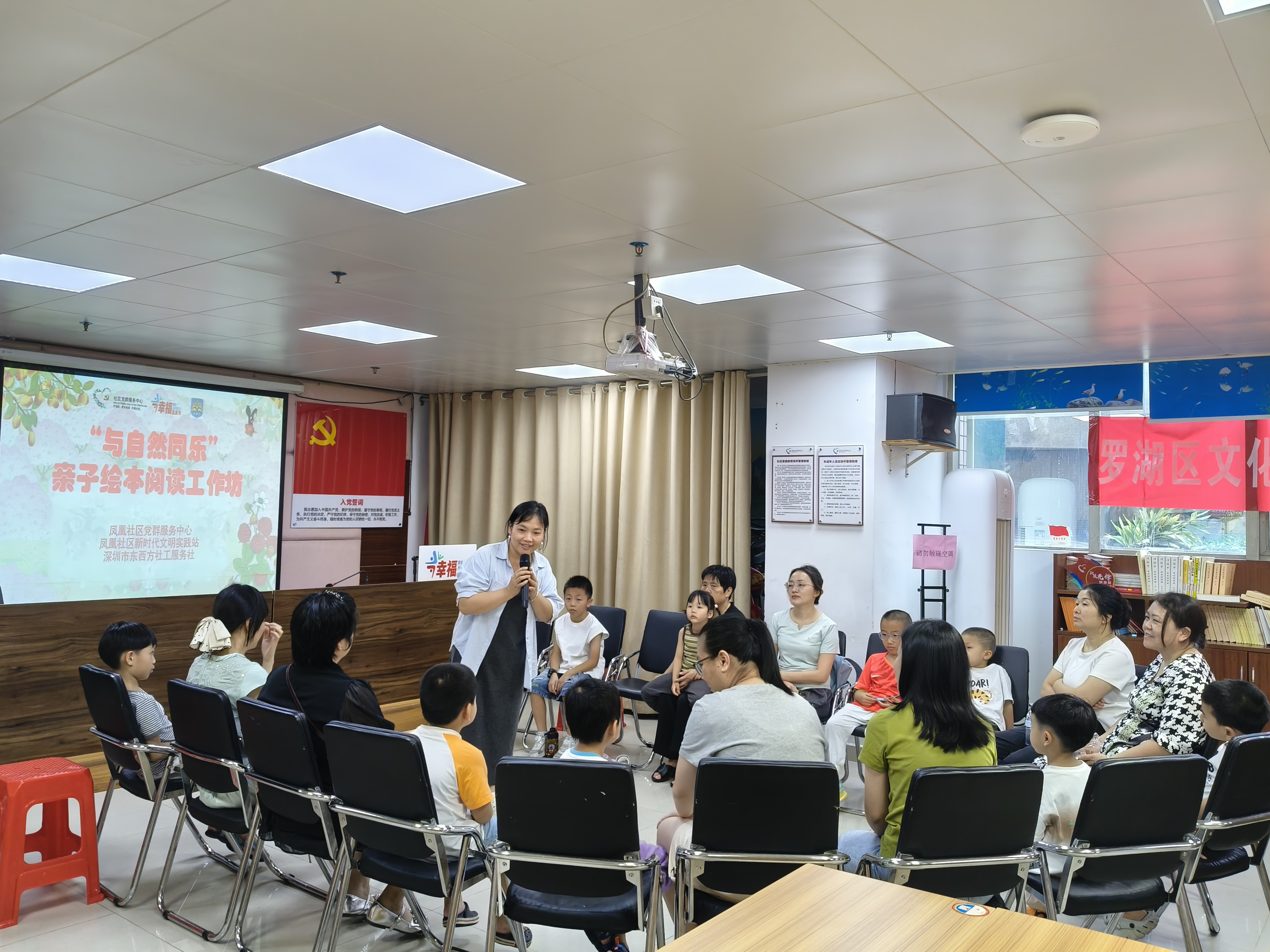 罗湖家园网讯:为丰富辖区儿童暑期生活,推动自然教育与亲子互动深度融合,8月17日下午,黄贝街道凤凰社区党群服务中心社工组织辖区亲子家庭,开展了“与自然同乐”亲子绘本阅读工作坊。12组5-8岁的亲子家庭通过 “阅读+ 模仿” 的沉浸式体验,开启了一场别开生面的夏日自然探索之旅。