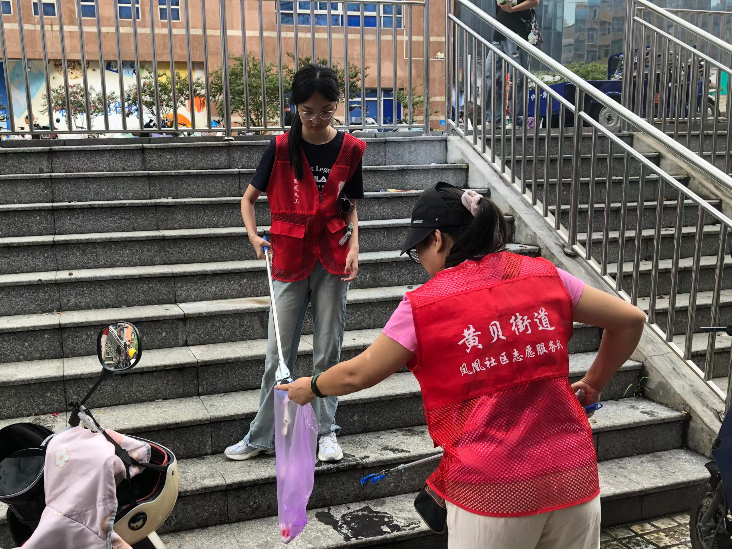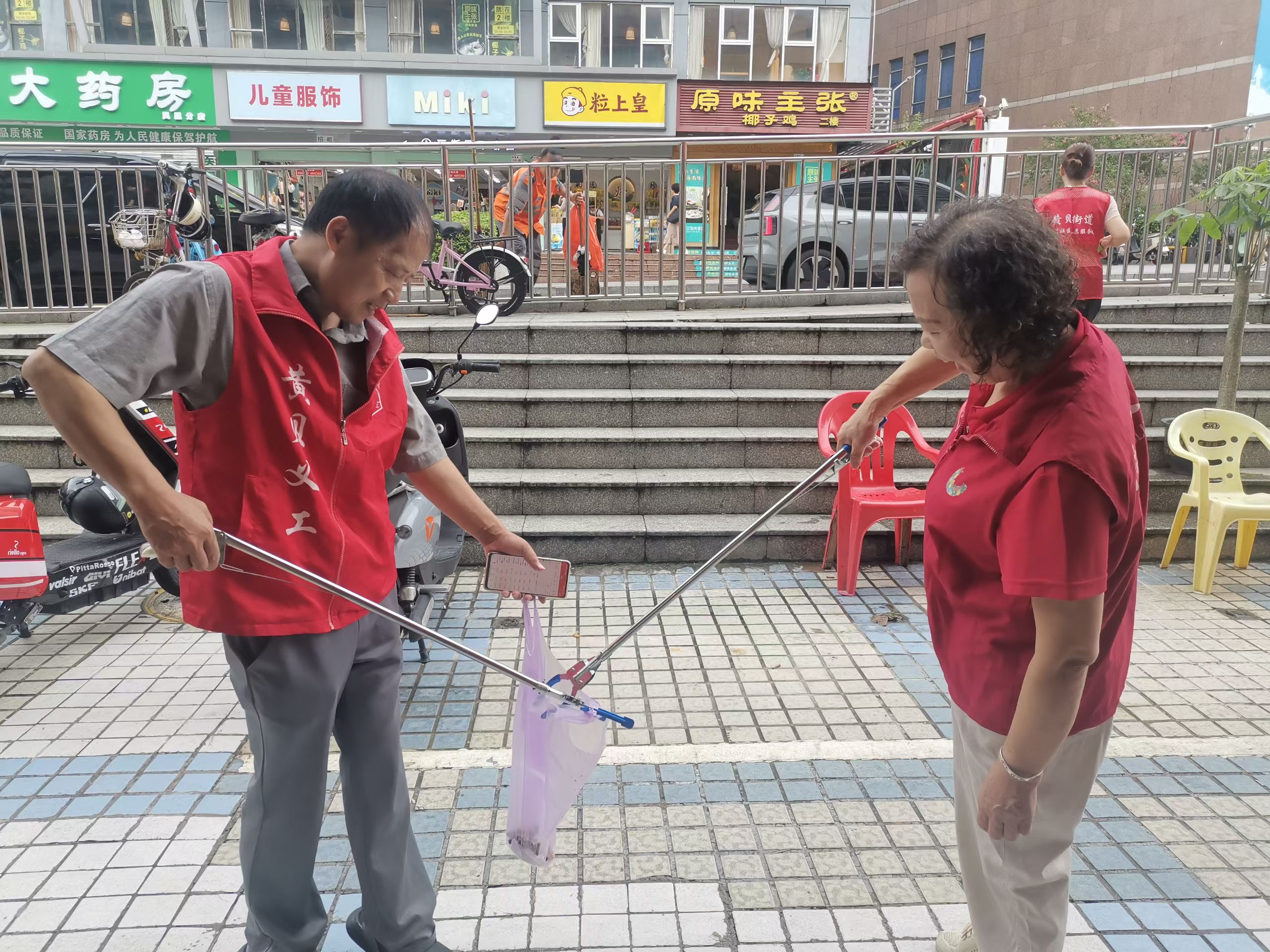 活动中,志愿者们以高度的责任感投入服务。大家合理分工、默契配合,每3人成一组,两组队员手持夹子,仔细排查道路、绿化带角落等,将散落的烟头、废弃纸片、塑料包装袋等垃圾一一夹起,精准投入同伴手中的垃圾袋里。阳光虽烈,汗水浸湿了衣衫,但志愿者们的脸上始终洋溢着笑容,专注的眼神和认真的动作,成为夏日街区里一道动人的风景线。