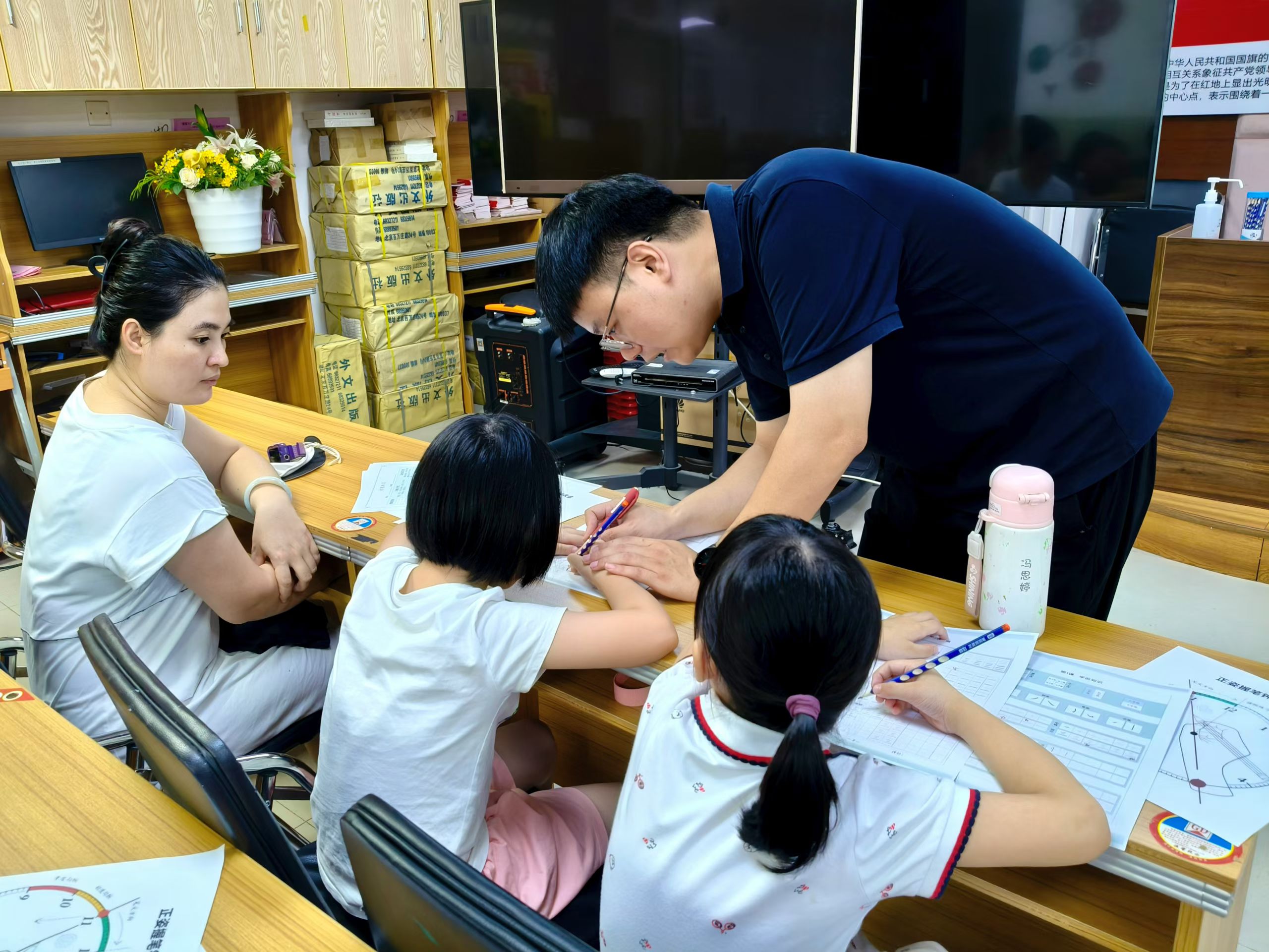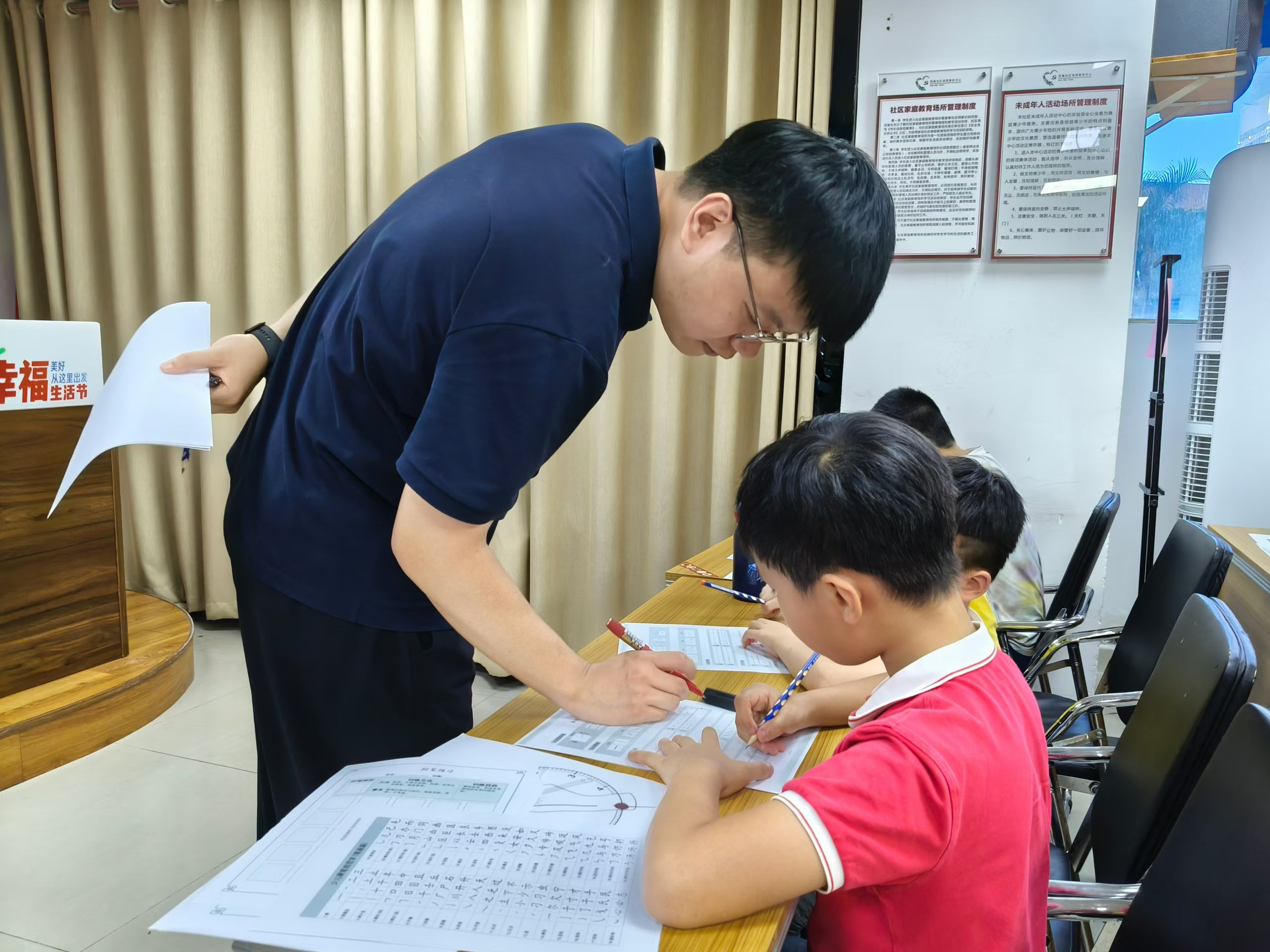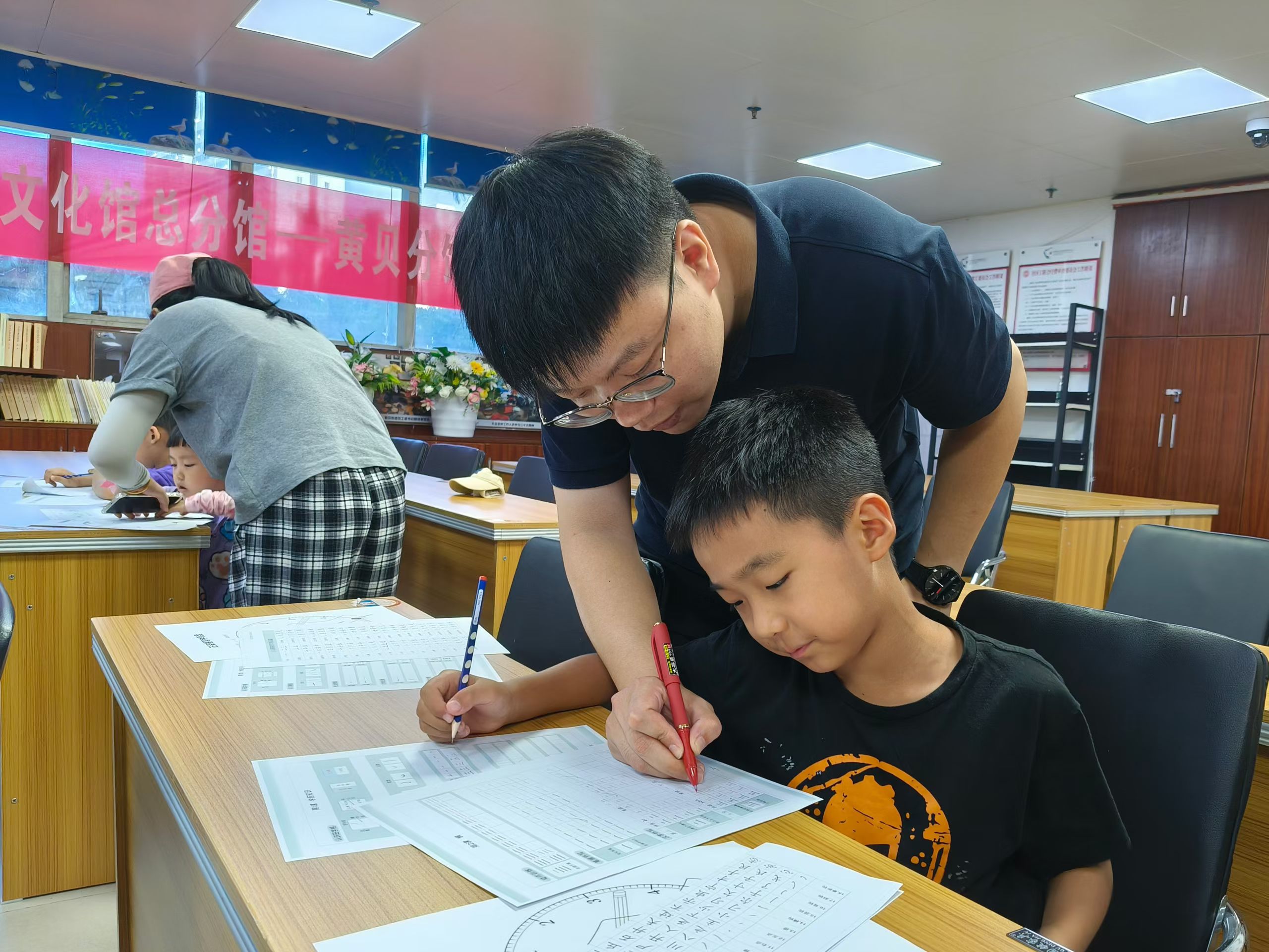 活动现场,书法老师从最基础的握笔姿势教起,耐心细致地为孩子们讲解握笔要点,并亲自示范,手把手纠正孩子们的错误姿势。随后,孩子们在老师的指导下,开始在纸上练习基本笔画。一横一竖,一撇一捺,虽然稚嫩,却充满了认真与专注。在练习过程中,老师穿梭于孩子们之间,及时给予鼓励与指导,让孩子们在轻松愉快的氛围中掌握书写技巧。