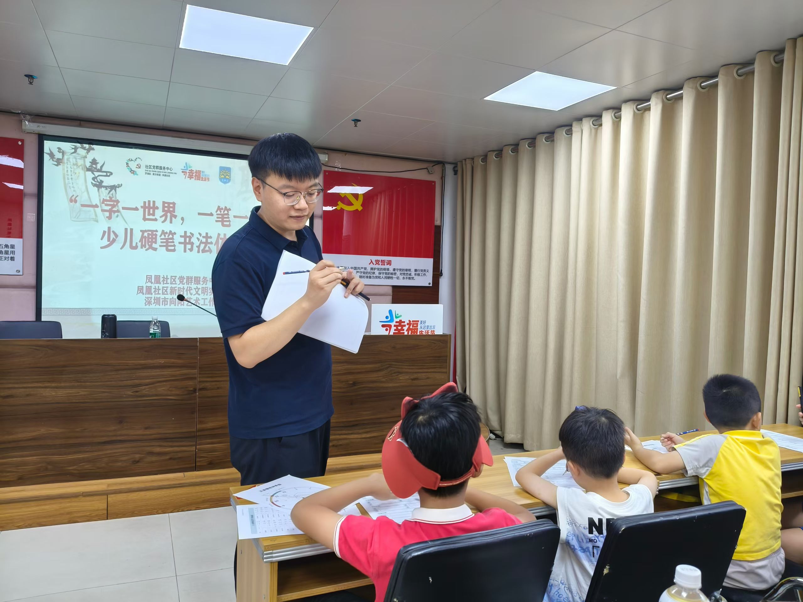 罗湖家园网讯:2025年8月30日下午,在凤凰社区党委的统筹领导下,黄贝街道凤凰社区党群服务中心社工携手深圳市向阳艺术工作室,开展了“一字一世界,一笔一乾坤”少儿硬笔书法体验课,为社区儿童开启了一场充满墨香的文化之旅。