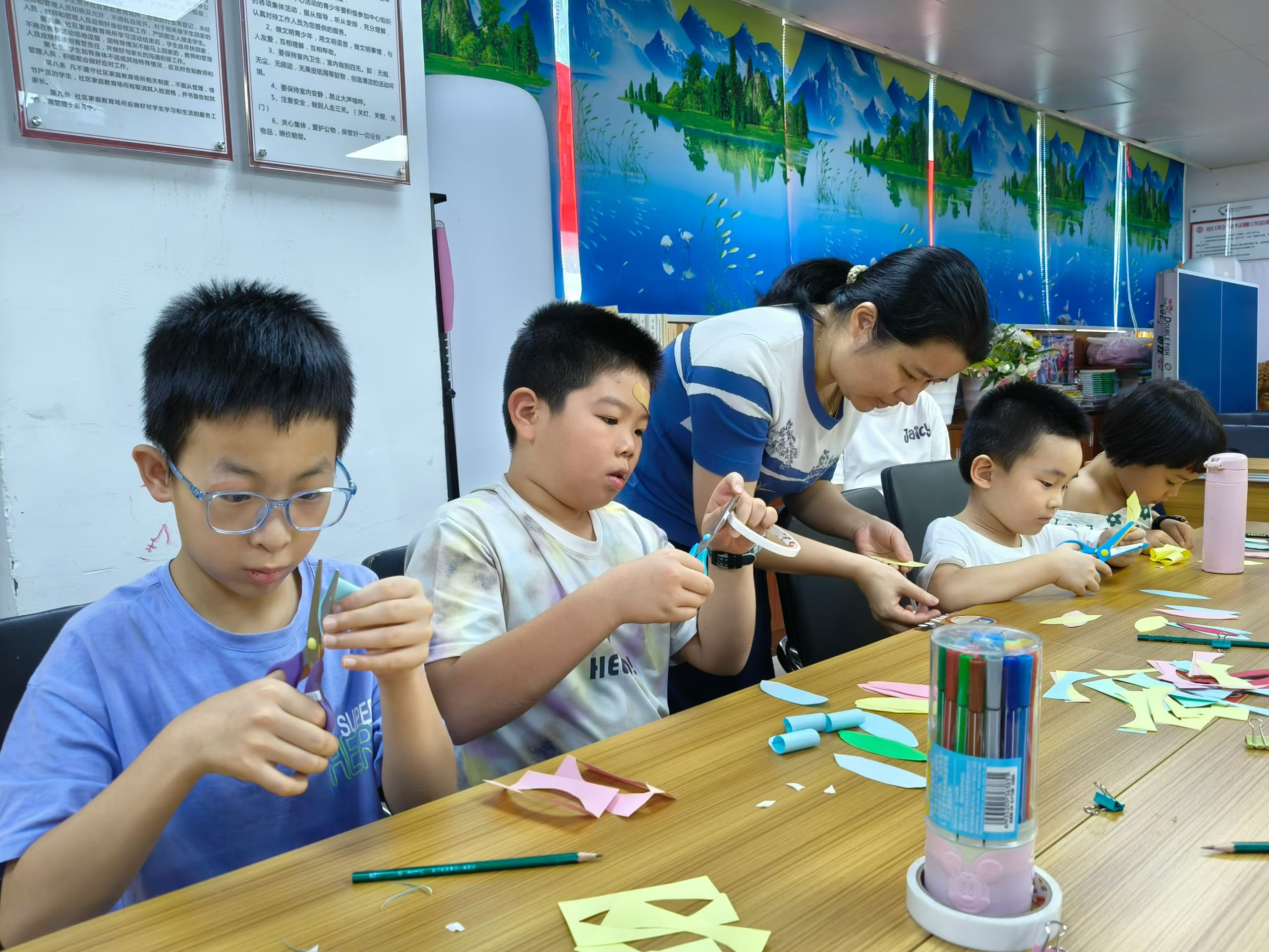 活动伊始,社工以“心中的老师”“老师的暖心事”与孩子互动。孩子们分享与老师之间的点点滴滴,感恩之情愈发浓厚。随后,社工分发彩色卡纸、水彩笔等材料,示范贺卡制作步骤,鼓励孩子们融入回忆与祝福,打造专属贺卡。制作中,孩子们专注创作,贴丝带贴纸,还相互交流创意。社工穿梭其间,协助低龄孩子用剪刀、指导配色,助力孩子们发挥创造力。