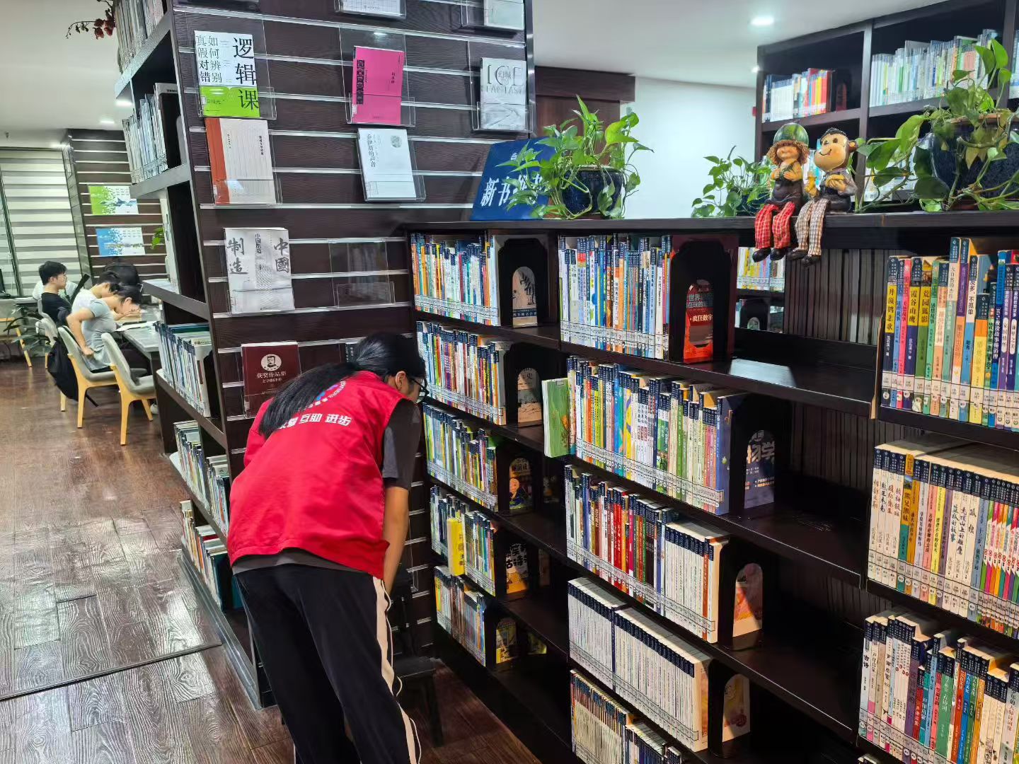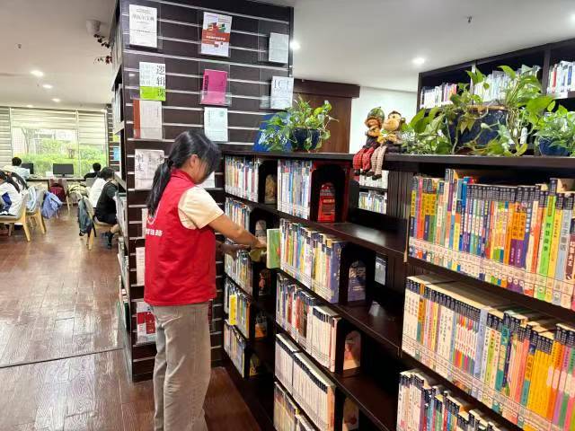 考虑到开学后青少年的时间安排,本次志愿服务招募特意将服务时段集中在周末。招募链接一经发布,便迅速报满。活动中,志愿者们分工明确,有的负责图书归位与分类整理,确保借阅区域整洁有序;有的在入口处提供引导服务,协助老年读者操作自助借还设备;还有的参与绘本角维护,为低龄儿童营造良好阅读环境。黄贝街道分馆工作人员表示,青少年志愿者的加入不仅缓解了周末借阅高峰的服务压力,更让图书馆成为传递文明、培育责任意识的实践平台。