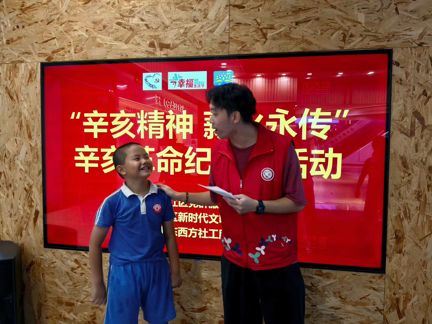 活动伊始,社工讲述辛亥革命历史背景与影响,从武昌起义打破封建帝制,到革命先辈践行“驱除鞑虏,恢复中华”等主张,再到其为新民主主义革命铺路的意义。通过互动提问,引导居民深入了解历史,明白铭记历史是为汲取力量、开创未来。