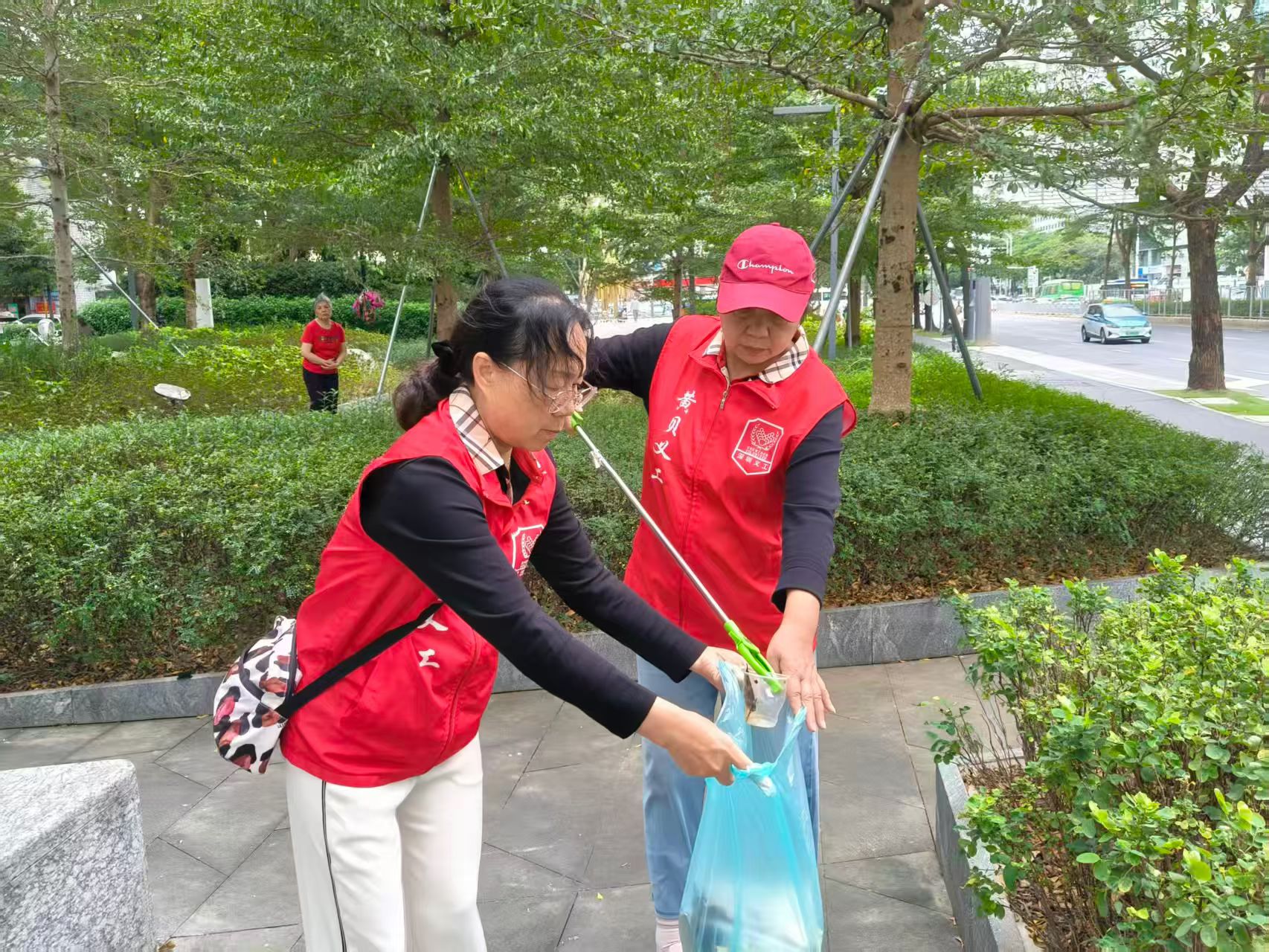 活动中,志愿者们热情高涨,手持夹子、垃圾袋等工具,重点对金笔广场附近的绿化草丛进行全面清理。草丛中隐藏的塑料瓶、纸屑、烟头、果皮等垃圾被一一捡拾,志愿者们分工协作,有的弯腰细致搜寻,有的及时将垃圾分类装入袋中,不放过任何一处卫生死角。大家不怕脏、不怕累,相互配合,现场一派忙碌而有序的景象。