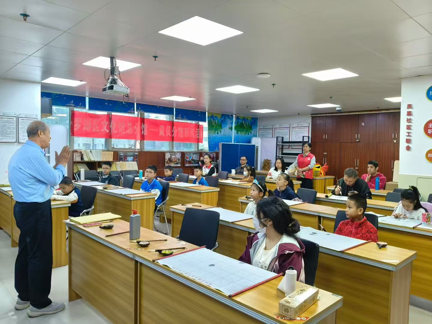 罗湖家园网讯:笔墨飘香润人心,文化传承续新篇。为弘扬中华优秀传统文化,丰富社区居民精神文化生活,搭建老少互动交流的平台。2025年11月30日上午,凤凰社区党委,凤凰社区党群服务中心开展 “赓续文化血脉,老少携手绘风华” 书法公益课堂第一期。本次活动吸引了20位儿童青少年的积极参与,以笔墨为桥,让传统文化在代际相传中焕发新生机。