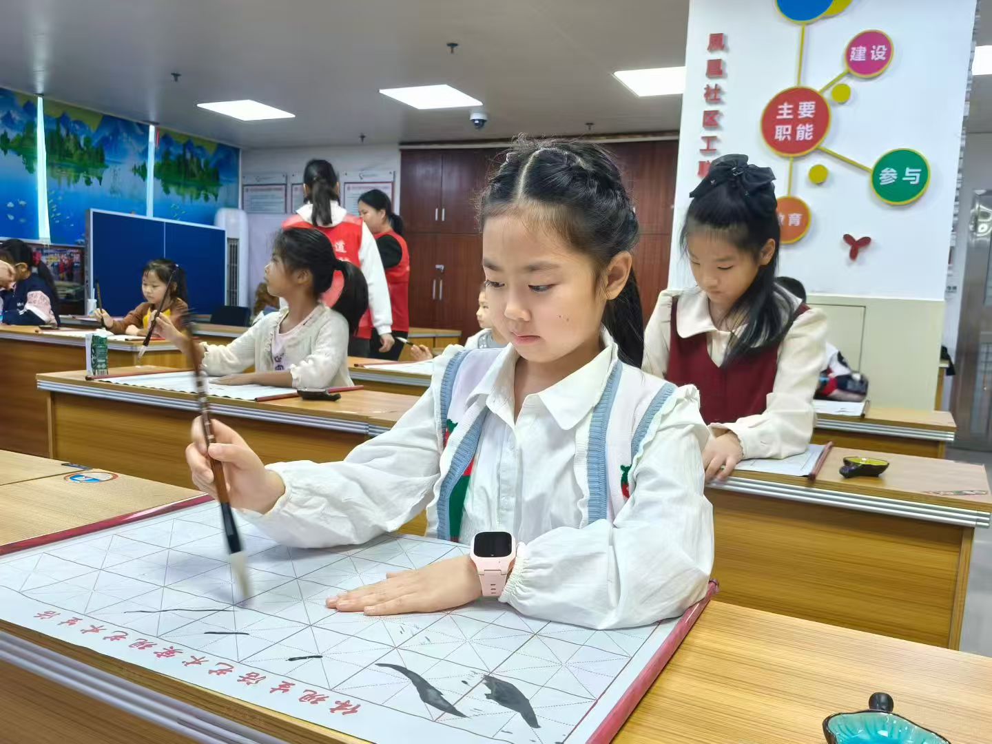 罗湖家园网讯:笔墨飘香润童心,文化传承共成长。近日,由凤凰社区党委、凤凰社区党群服务中心联合主办的“赓续文化血脉,老少携手绘风华”书法公益课堂第二节如期而至,数名儿童青少年在墨香中感受汉字魅力,在协作中传承文化基因。
