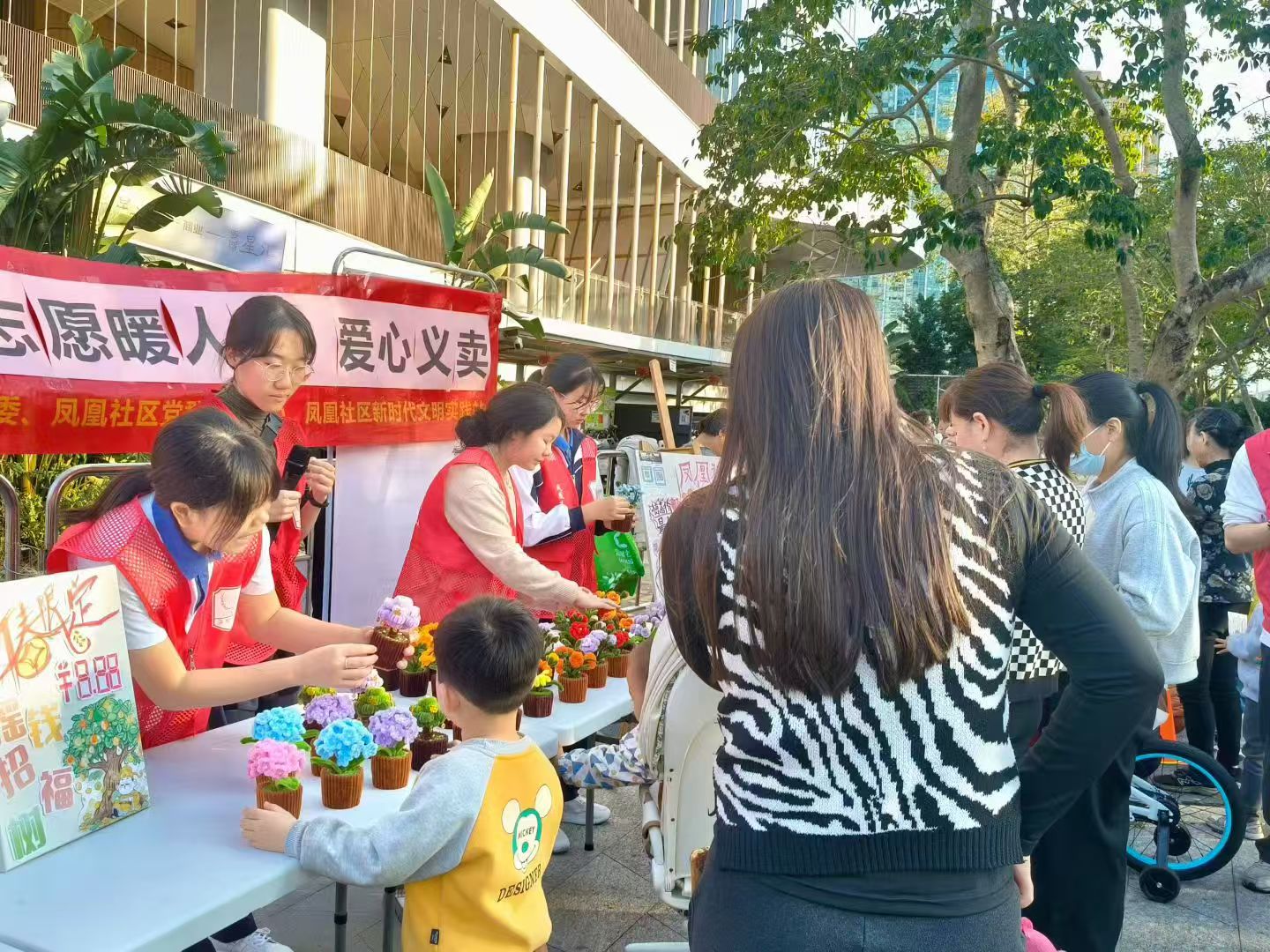 罗湖家园网讯:2026年1月26日下午,在凤凰社区党委指导下,凤凰社区党群服务中心社工团队组织辖区志愿者及青少年志愿队伍,于仁恒广场开展第三场“指尖传递爱,志愿暖人心”爱心义卖活动。活动以善意为纽带,延续前两场公益初心,吸引众多居民驻足参与,让公益之光点亮社区,让温暖力量浸润人心。