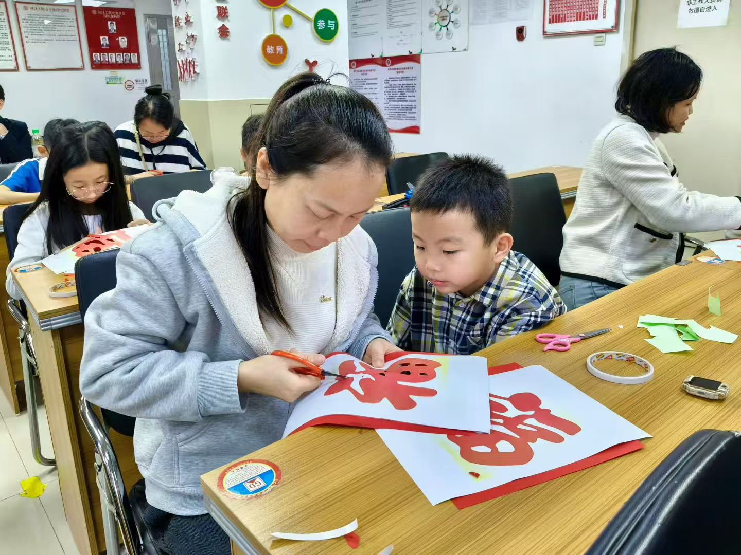 “红纸凝春 巧手生福”亲子剪纸活动