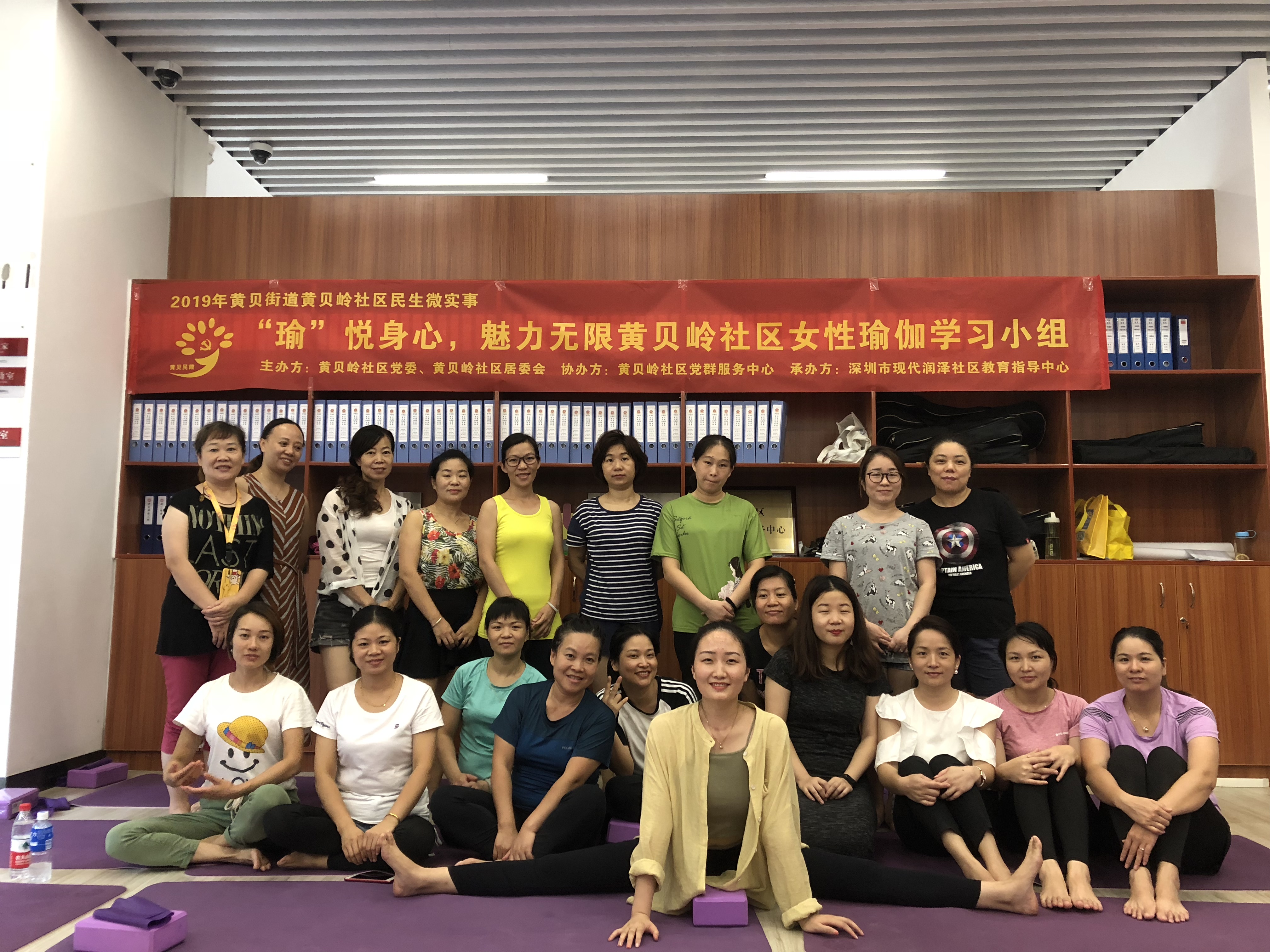 2019年8月13日下午4点,黄贝岭社区党群服务中心舞蹈室传来悠扬的轻音乐,走近一看,原来是由黄贝岭社区党委、黄贝岭社区居委会主办,深圳市现代润泽社区教育指导中心承办的“‘瑜’悦身心,魅力无限”女性瑜伽学习小组中级班开课了。
