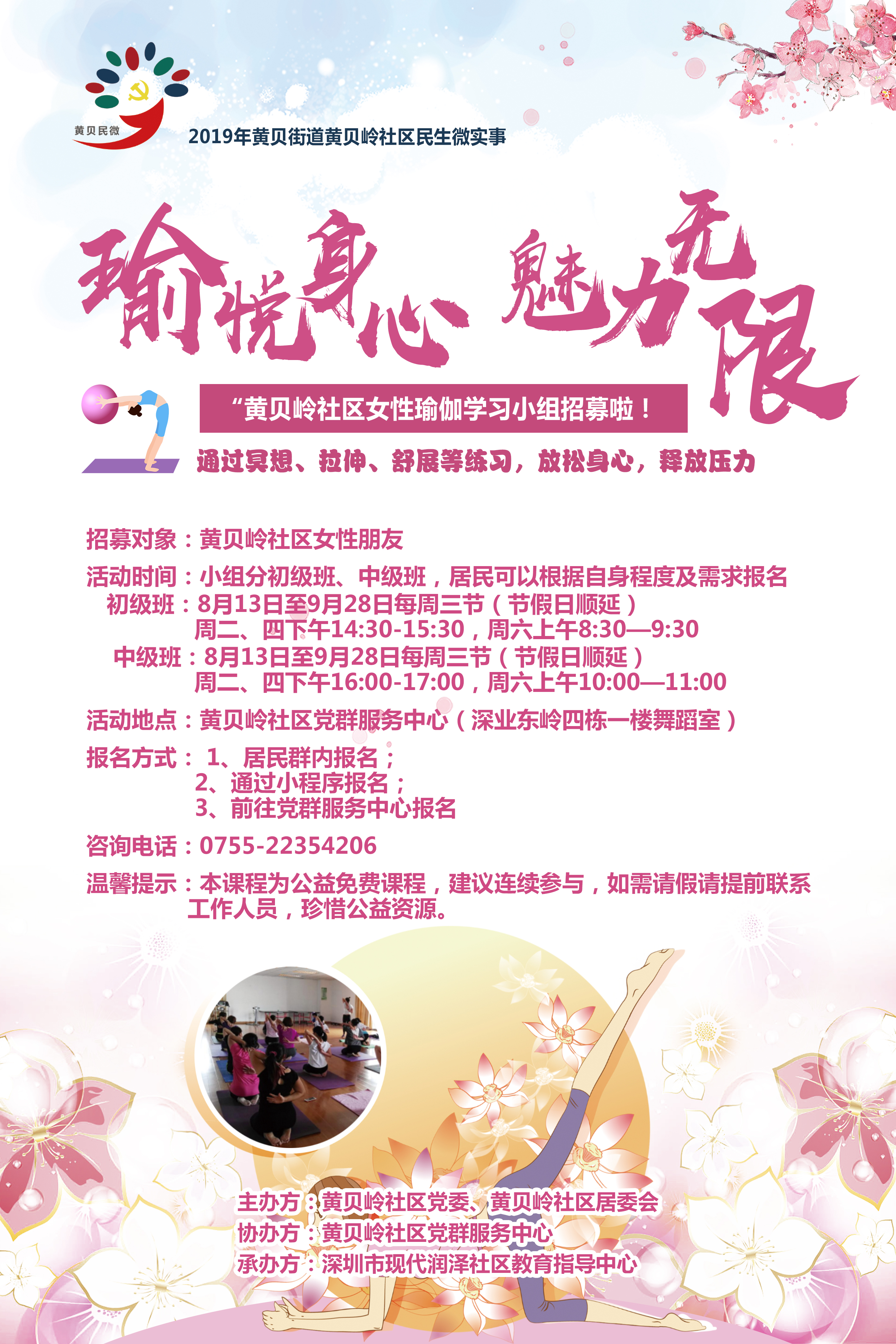 黄贝岭民生微实事项目:“瑜悦身心,魅力无限”黄贝岭社区女性瑜珈学习小组中级班第七节课开课啦!