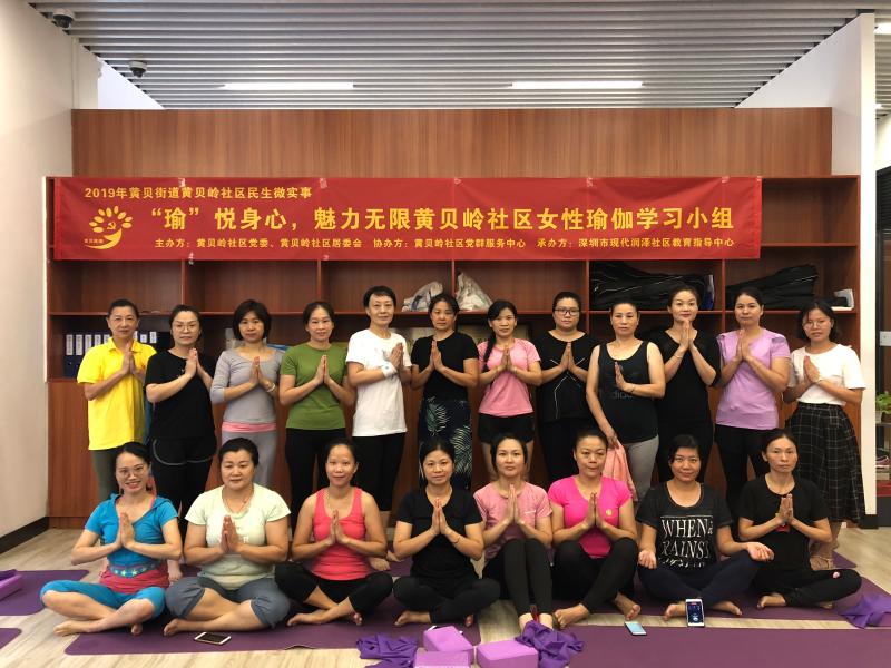 2019年8月27日下午16:00,由黄贝岭社区党委、黄贝岭社区居委会主办,深圳市现代润泽社区教育指导中心承办的“‘瑜’悦身心,魅力无限”女性瑜伽学习小组中级班第七节如期开课了。