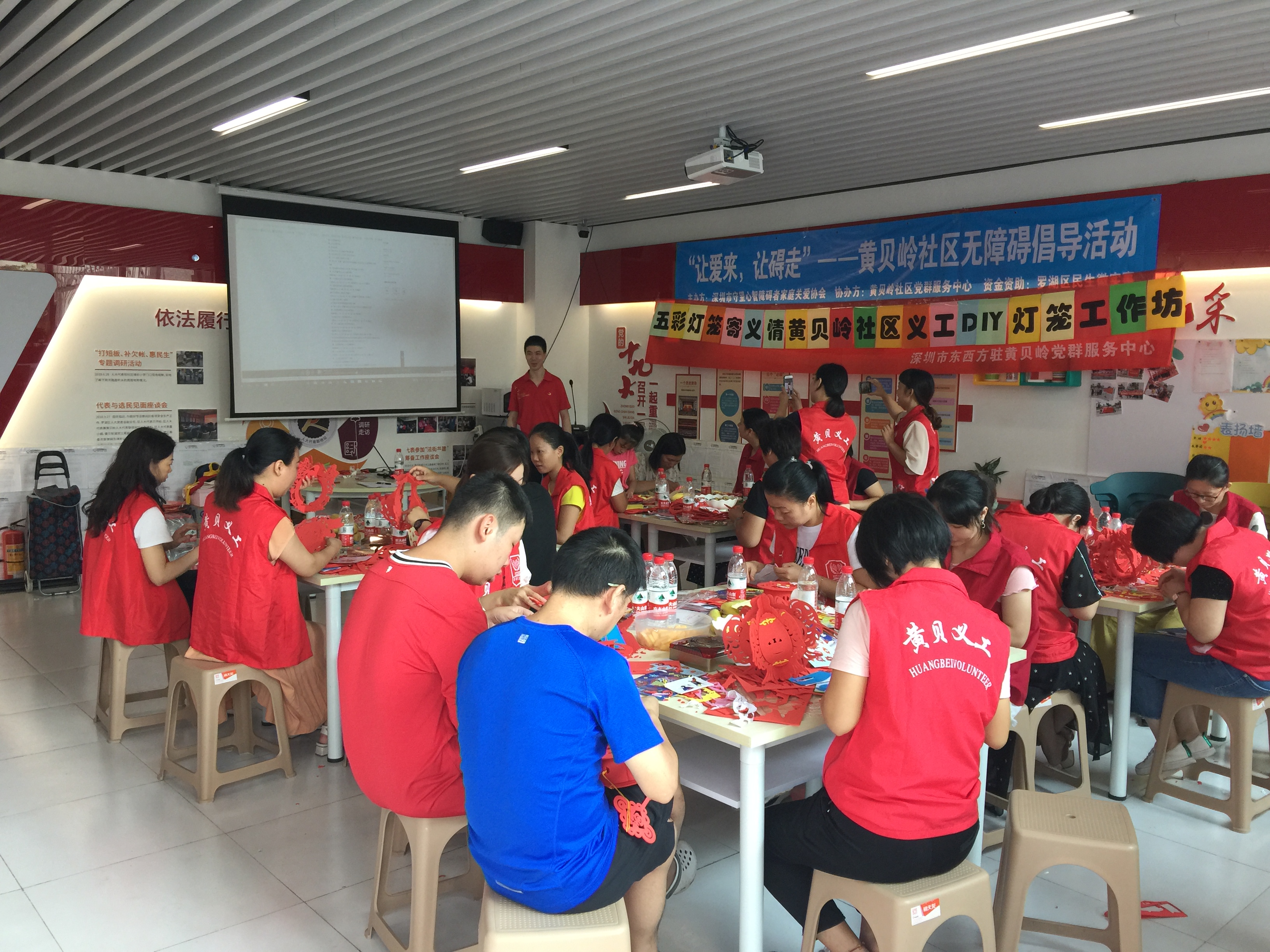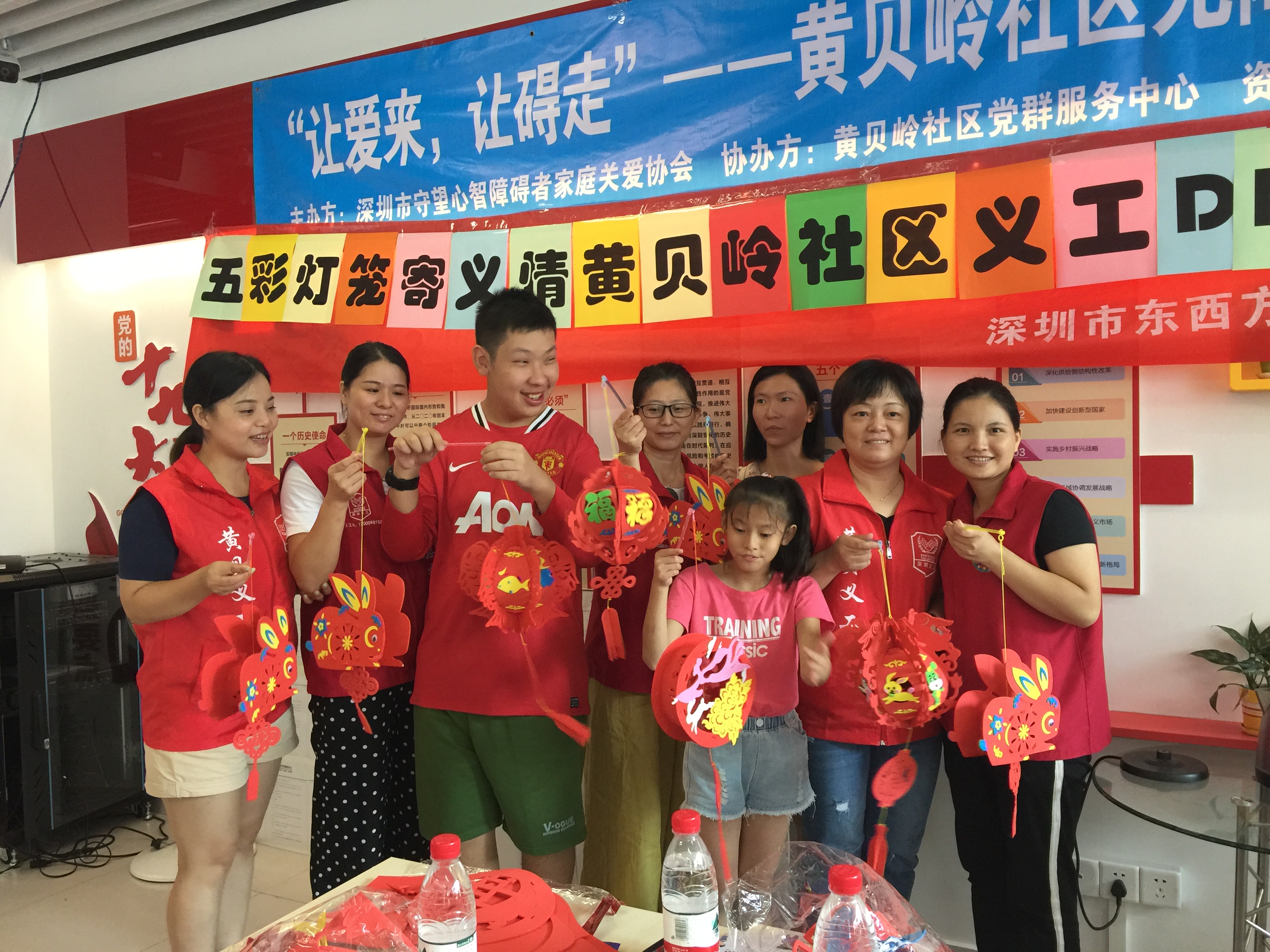 2019年9月12日上午,在黄贝岭社区党委的领导下,黄贝岭社区党群服务中心特邀深圳市守望心智障碍者家庭关爱协会,共同开展灯笼DIY活动。