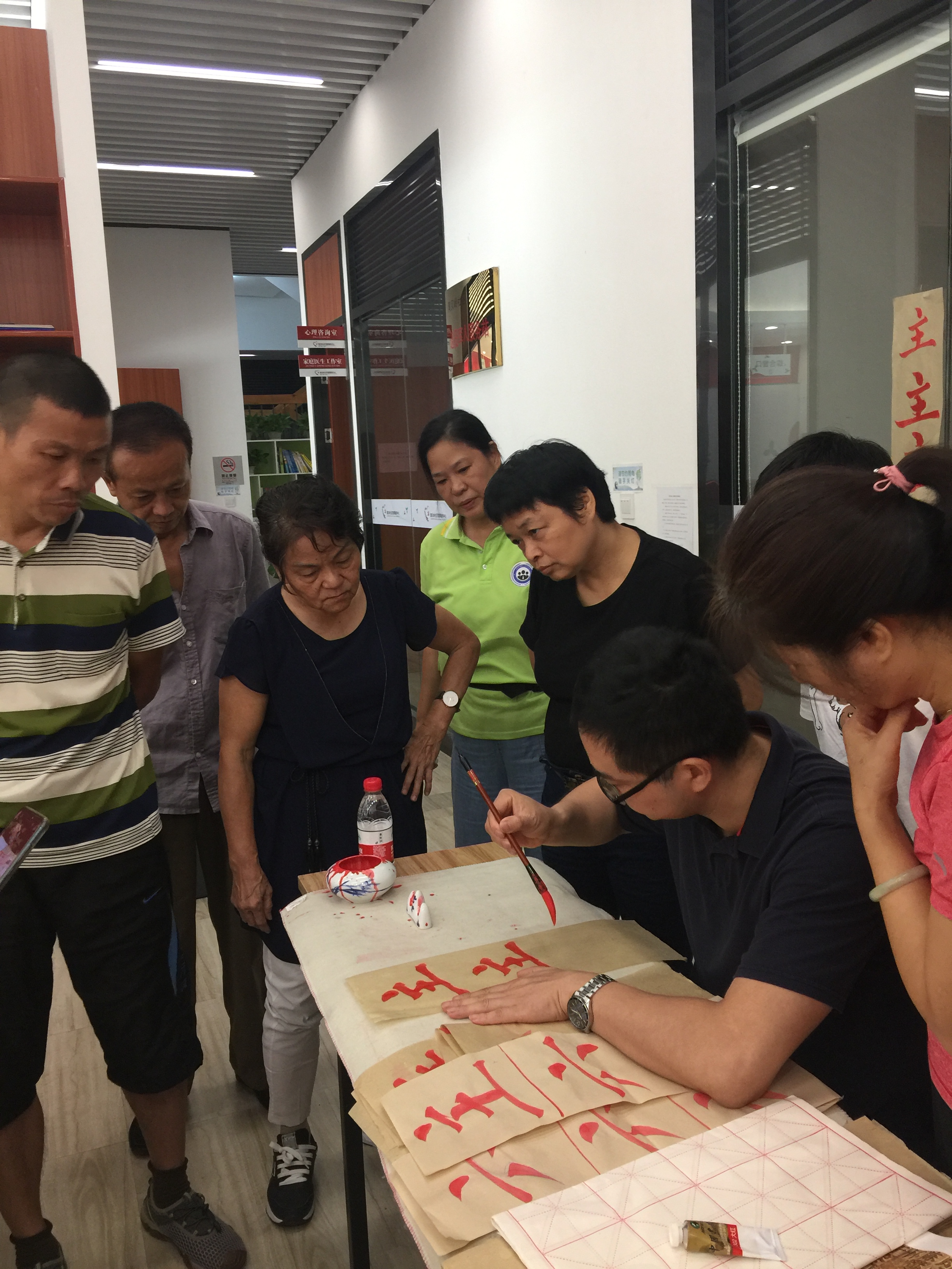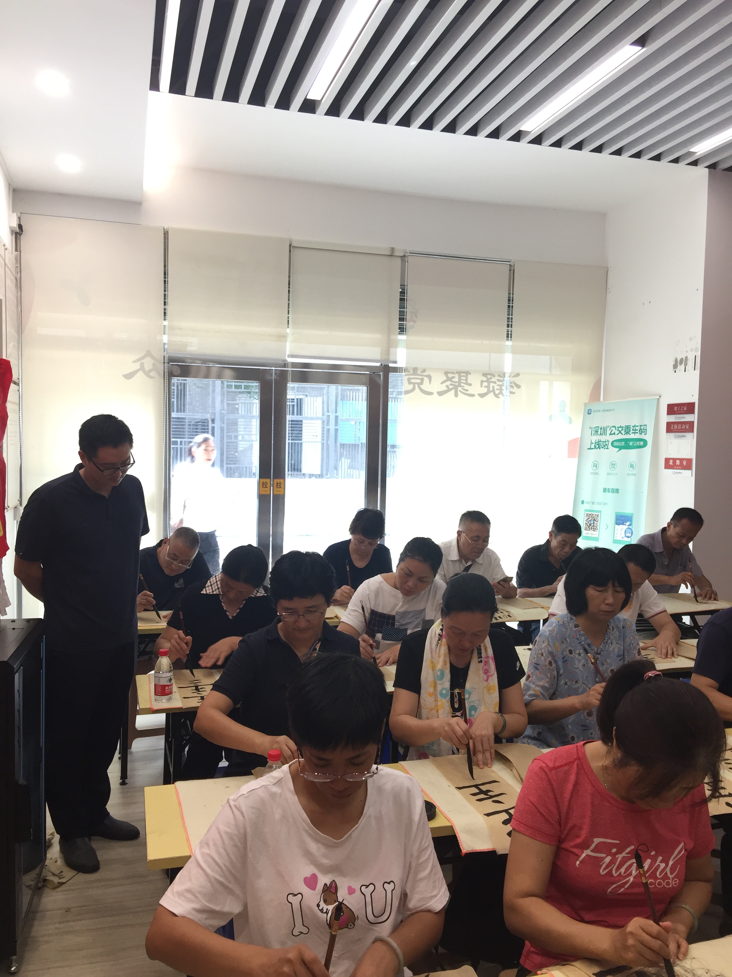 2019年9月18日周三上午10:00-10:45,“让书法走进黄贝岭社区”活动在黄贝岭社区工作站舞蹈室开展了第十场活动,本次共有29位社区居民参加,1位居民请假。