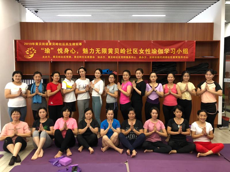 2019年10月10日下午15:30,由黄贝岭社区党委、黄贝岭社区居委会主办,深圳市现代润泽社区教育指导中心承办的“‘瑜’悦身心,魅力无限”女性瑜伽学习小组初级班开展项目总结分享会。