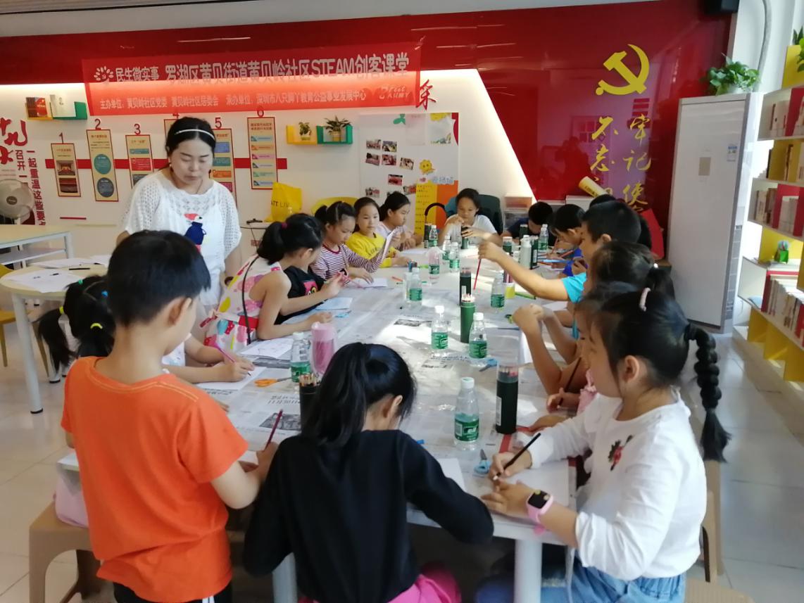 2019年11月3日,罗湖区黄贝街道黄贝岭社区民生微实事项目“STEAM创客课堂”持续开展中。这是由黄贝街道办事处、黄贝岭社区居委会、黄贝岭社区党群服务中心主办,深圳市东西方社工服务社协办,深圳市八只脚丫教育公益事业发展中心承办的民微项目。一场以“失落的一角”立体绘本故事为主题设计的手工课,给孩子们带来新奇的手工制作体验。
