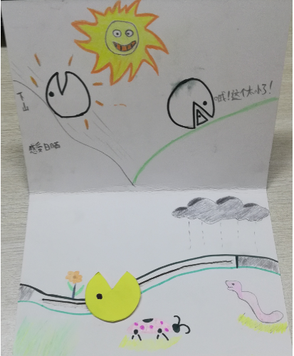 在孟老师的悉心指导下,孩子们从阅读绘本故事内容,思考绘图方案开始,自己设计绘制图案,色彩运用搭配并进行艺术创作,将孩子心理健康成长,保持良好心态融汇贯通。再到最后制作出一本自己满意的立体绘本,体验了一次STEAM完整的训练。