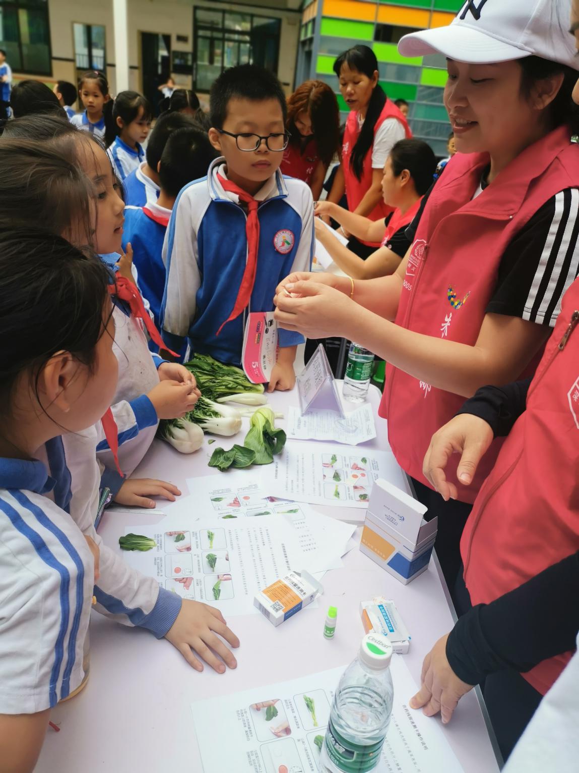 接下来,活动组织方准备了200余份农药残留快速检测试剂和各类待检蔬菜,请参加活动的学生们在现场体验农药残留快速检测试验。活动中,同学们热情高涨,纷纷大展身手。通过自己做实验,同学们对农药残留和农药残留超标这两个概念有了一定的认识。也让同学们对学习和了解食品安全知识有了更浓厚的兴趣。