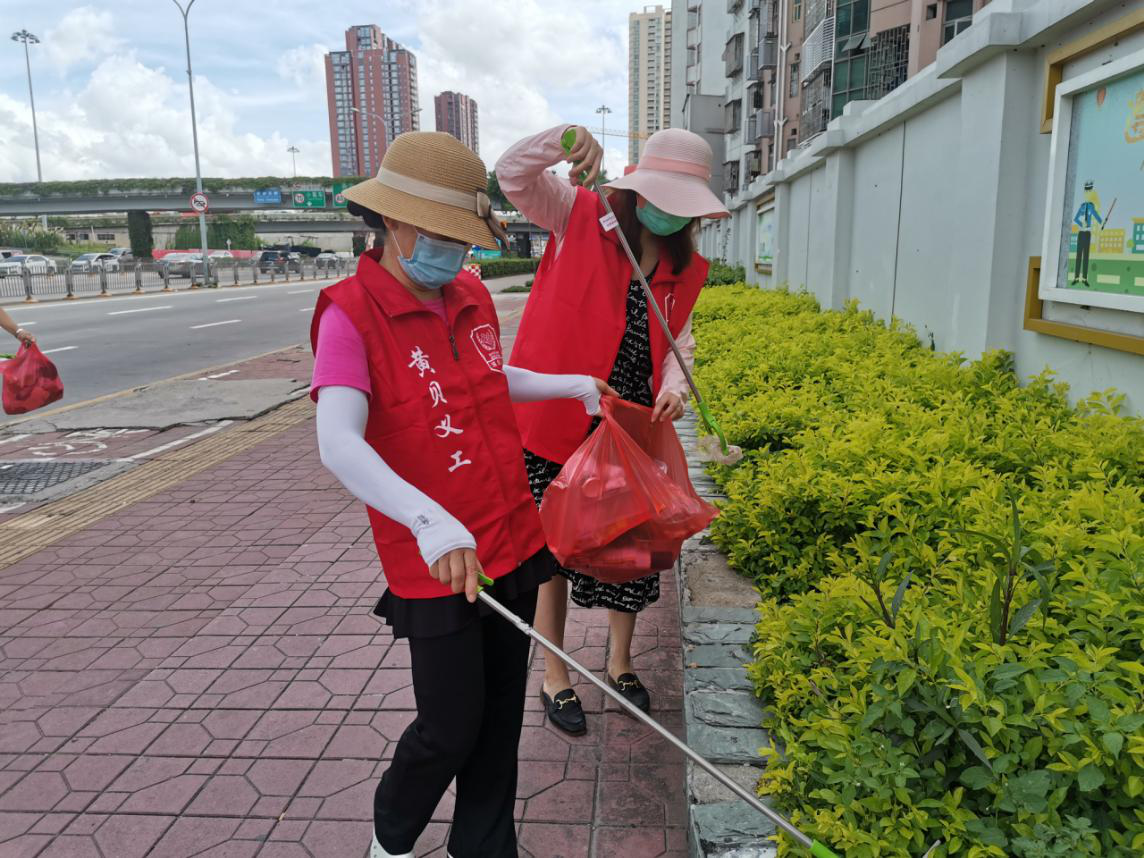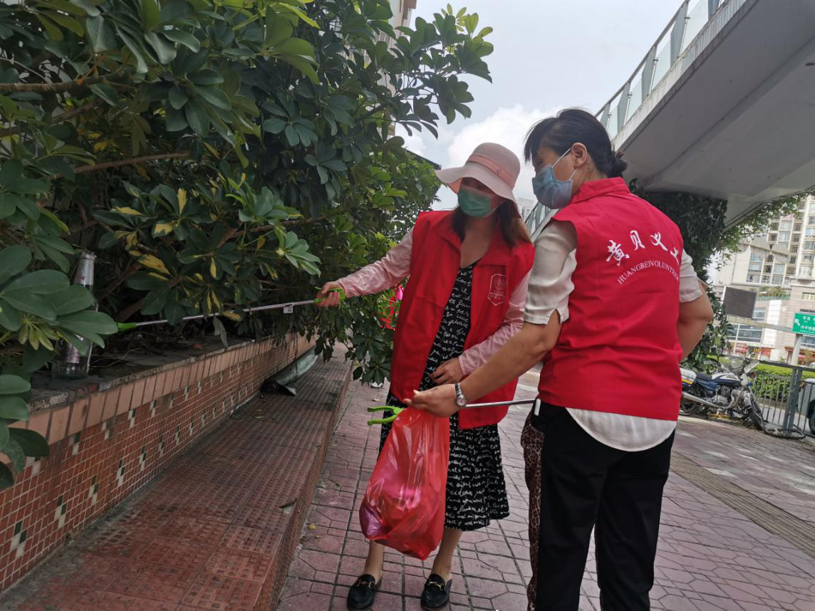 义工们顶着烈日,拿着垃圾夹子、垃圾袋,分别对辖区内深业东岭广场、公路边的花葡,休闲小公园等片区进行大规模的巡查,认真的清捡路面的废纸巾,烟头等垃圾,在行走过程中对路人和街铺乱扔垃圾的商户进行文明宣传劝导,呼吁大家一起爱护社区环境。