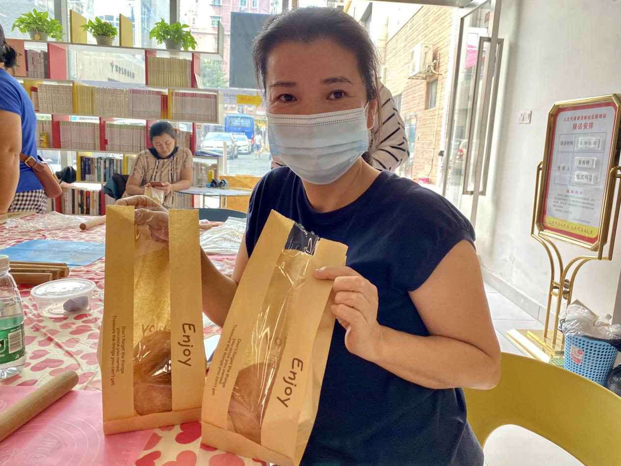 活动进行到第五场,来参加活动的居民们都非常熟悉了,一起结伴前往服务中心,整个制作过程也有说有笑,相互夸赞对方做的漂亮、好吃,无形中形成团结和谐的氛围,促进社区和谐发展。