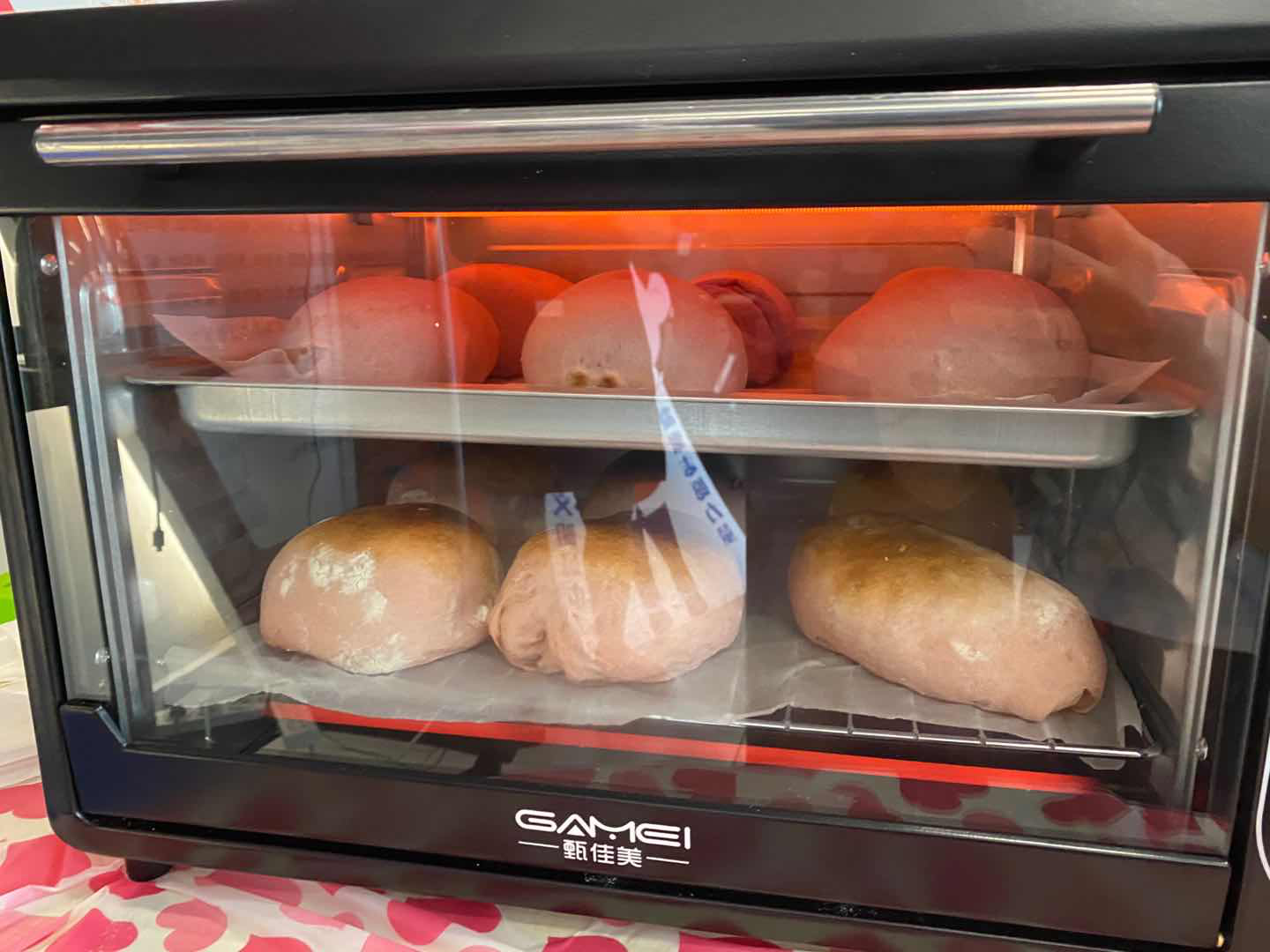 开始前,居民们都在热烈讨论着对紫麻薯软欧包的钟爱,表示现在这种麻薯软欧包非常流行,家人也超级喜欢吃,一直想学制作,学会了平常就可以在家制作当早餐啦。为了掌握技能,大家都在认真听老师讲解的要点---把麻薯擀长方形比面团小点,放在面团上,从一头卷起封口,做好放烤箱发孝。发孝后洒一些高筋面粉用刀子在上面割几个口子,烤箱170℃烤上30分钟,叮咚,出炉了!品尝着自己亲手制作的紫麻薯软欧包,大家纷纷表示太梦幻了,没想到自己也可以轻松做出来,比自己想象的要简单呢,尤其是那个麻薯夹心,软糯有嚼劲吃着很过瘾。