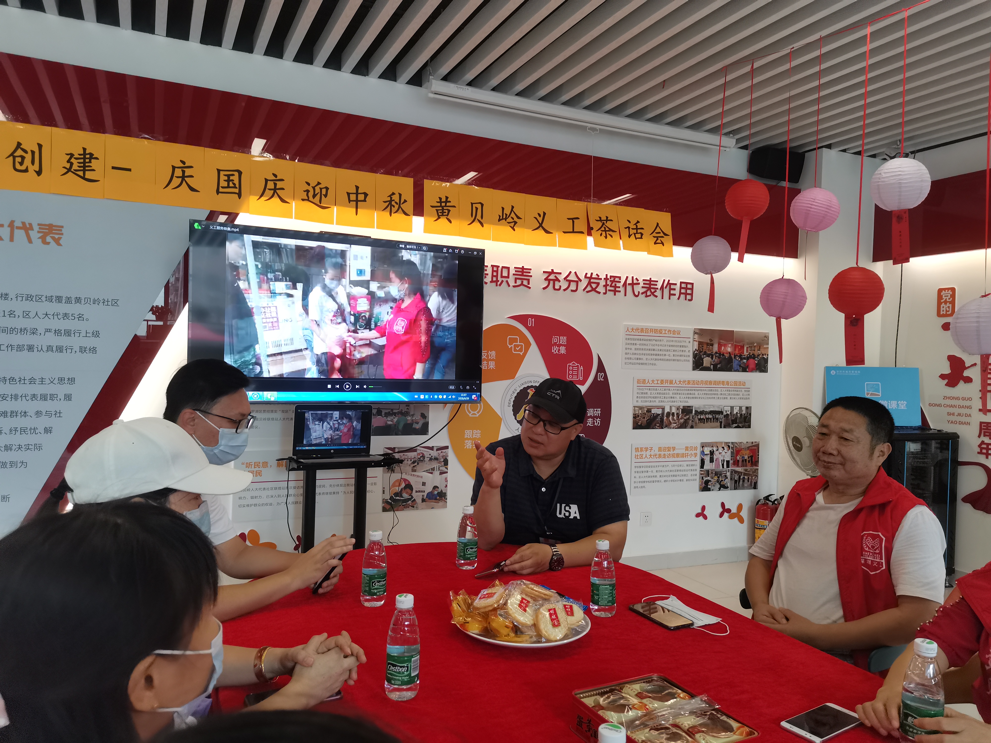 国庆、中秋佳节将至,为了增进社区义工团队和谐的气氛,一起感受和传递节日所承载的欢乐和情谊。2020年9月29日下午,在黄贝岭社区党委的领导下,温馨驻点社工组织社区义工举办了“庆国庆、迎中秋”黄贝岭义工茶话会。黄贝岭社区党委书记江涛,副书记张居正出席了本次会议。