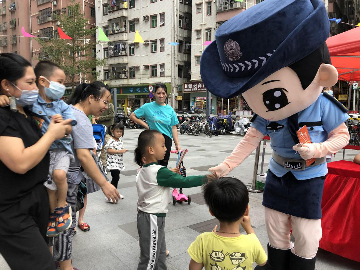 其中交警玩偶人最得小朋友的喜欢,她会在现场游走,向小朋友提问一些基本的交通知识问题,回答正确,便给予小糖果奖励。为此许多小朋友围绕着她,想要回答问题。
