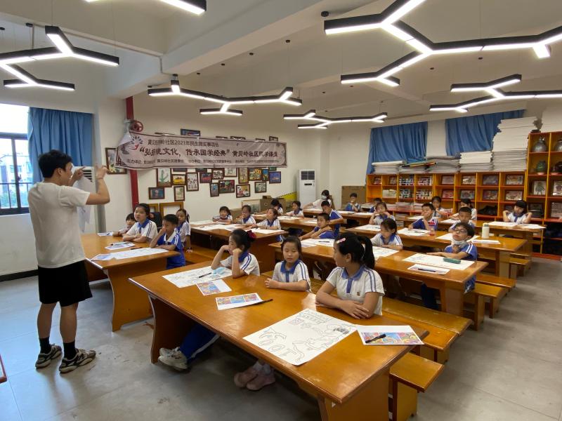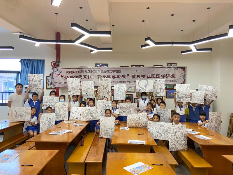 为让黄贝岭社区唯一的一所小学“靖轩小学”,丰富文化底蕴,使更多青少年们走进国画的世界,了解、学习、传承中国的传统文化,黄贝岭社区结合民生微实事项目“弘扬传统文化,传承国学经典”黄贝岭社区国学课堂,举办了充满魅力充满古典墨香的“水墨画”系列课程,在2021年9月17日(周五)下午15:30-17:30在靖轩小学六楼教室迎来了第二节课,活动到场25人。