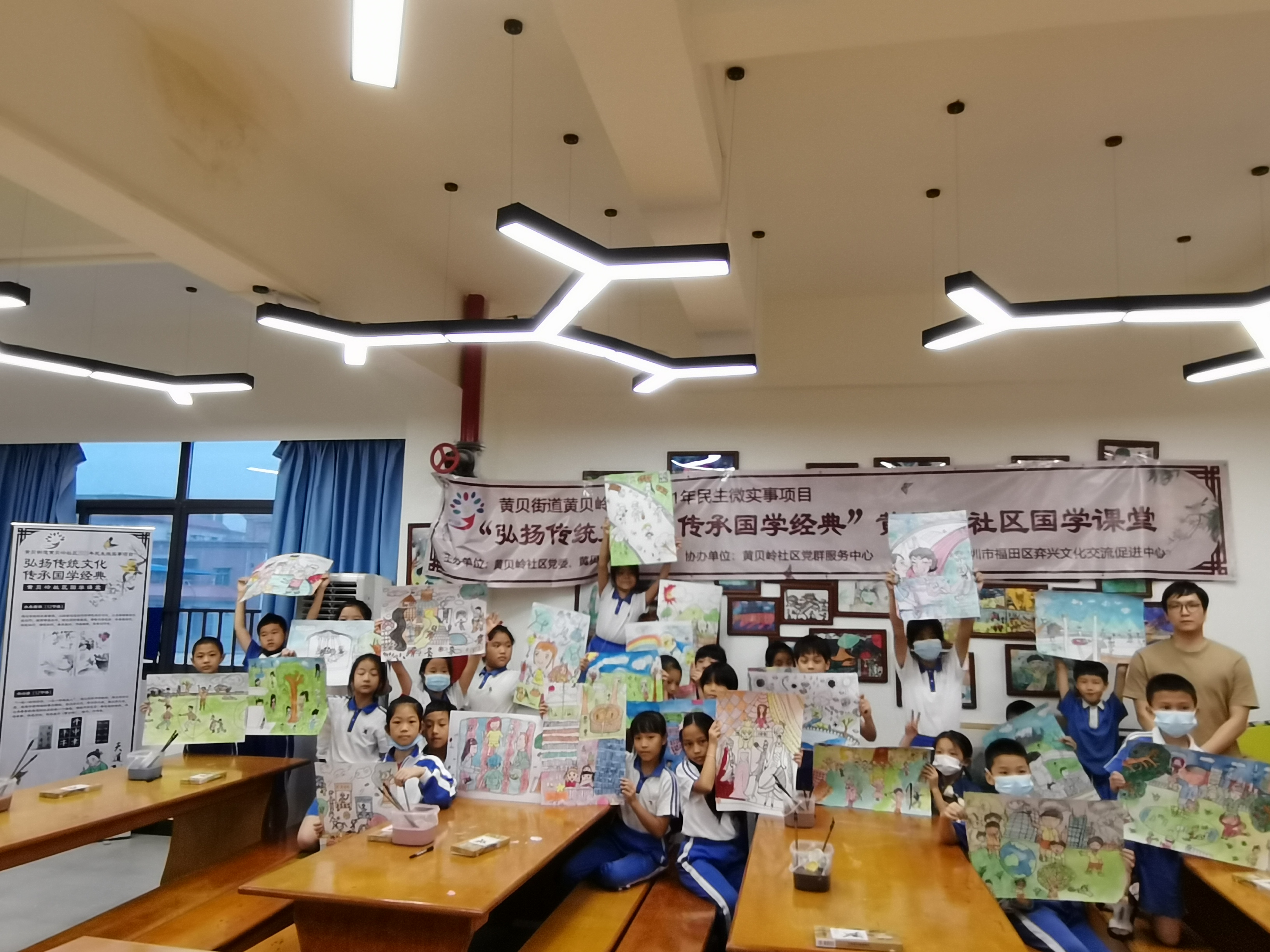 2021年10月8日(周五)下午15:30-17:30在靖轩小学六楼教室迎来了民生微实事项目“弘扬传统文化,传承国学经典”黄贝岭社区国学课堂“水墨画课”第六节课,活动到场25人。