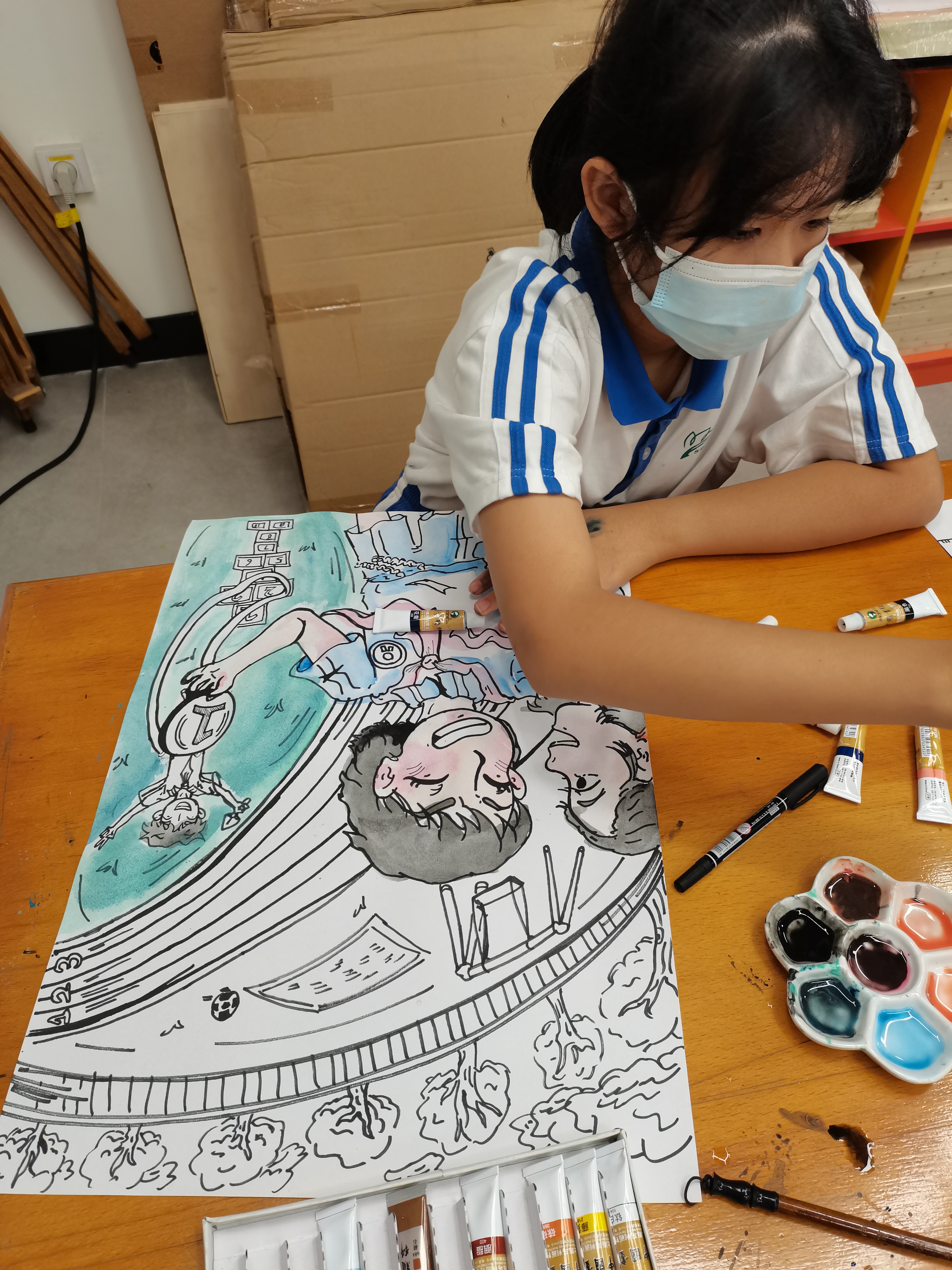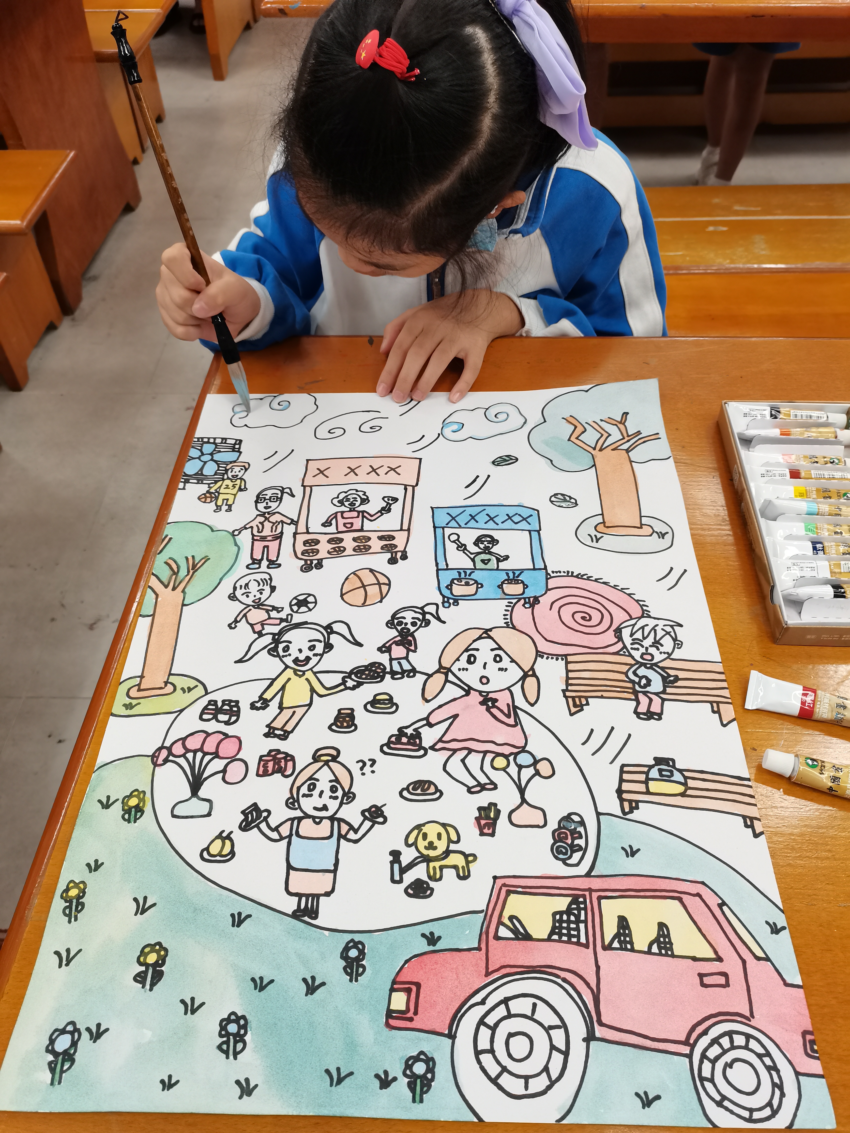 七天国庆假期结束,今天是开学后的第一天,同学们陆陆续续前来教室,重返校园,本次课程将重点复习为主,前几节课绘画作品中《我和我的好朋友》,老师针对此作品,让同学们做出作品层次,锻炼造型机构图能力,再用颜料进行上色。教室里透着一股墨香,稚嫩的小手握着毛笔在洁白的宣纸上勾画出一道道美丽的线条,大家十分认真地让作品稚拙而富有灵气。随后老师复习调水、调色入门之理,举一反三,掌握绘画的个中之妙和变化。最后在大家的初稿画中,看到了不一样的作品,与前期作品硬笔描画完全不同,有着同学们对颜色的独特想象。下一节课将结合外校展示艺术品的活动,让同学们绘画中国传统文化主题,例如年画,春联,龙舟等,让我们一起期待。