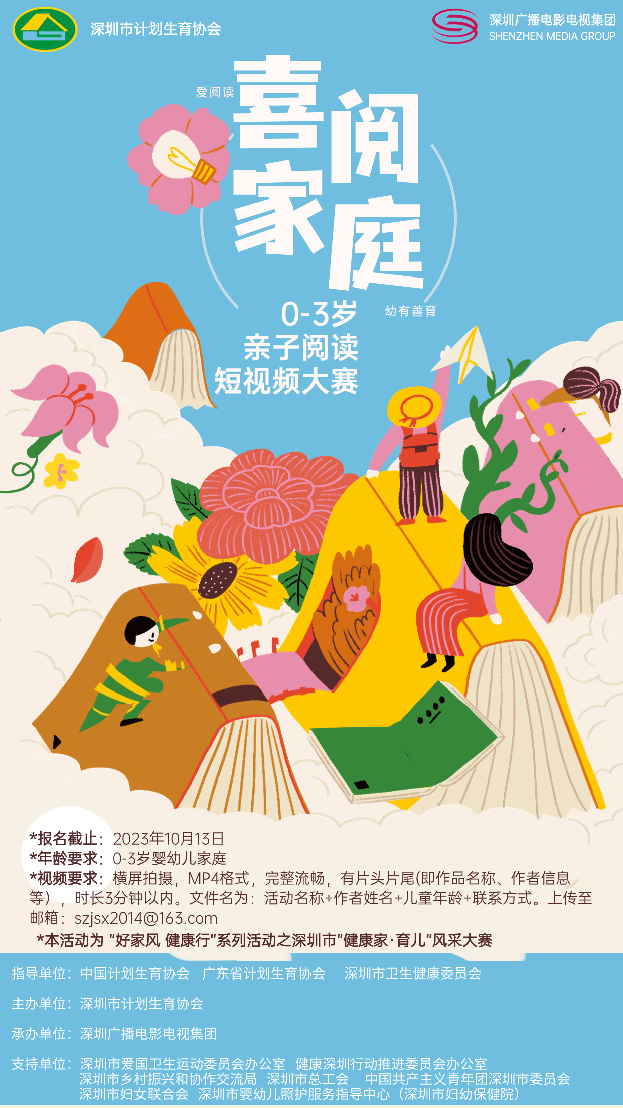 罗湖家园网讯:各位居民朋友们大家好!为促进科学育儿服务,共享亲子阅读时光,深圳市计生协将联合深圳广电集团举办“健康家.育儿”风采大赛,诚邀0-3岁幼儿及家长参赛。
