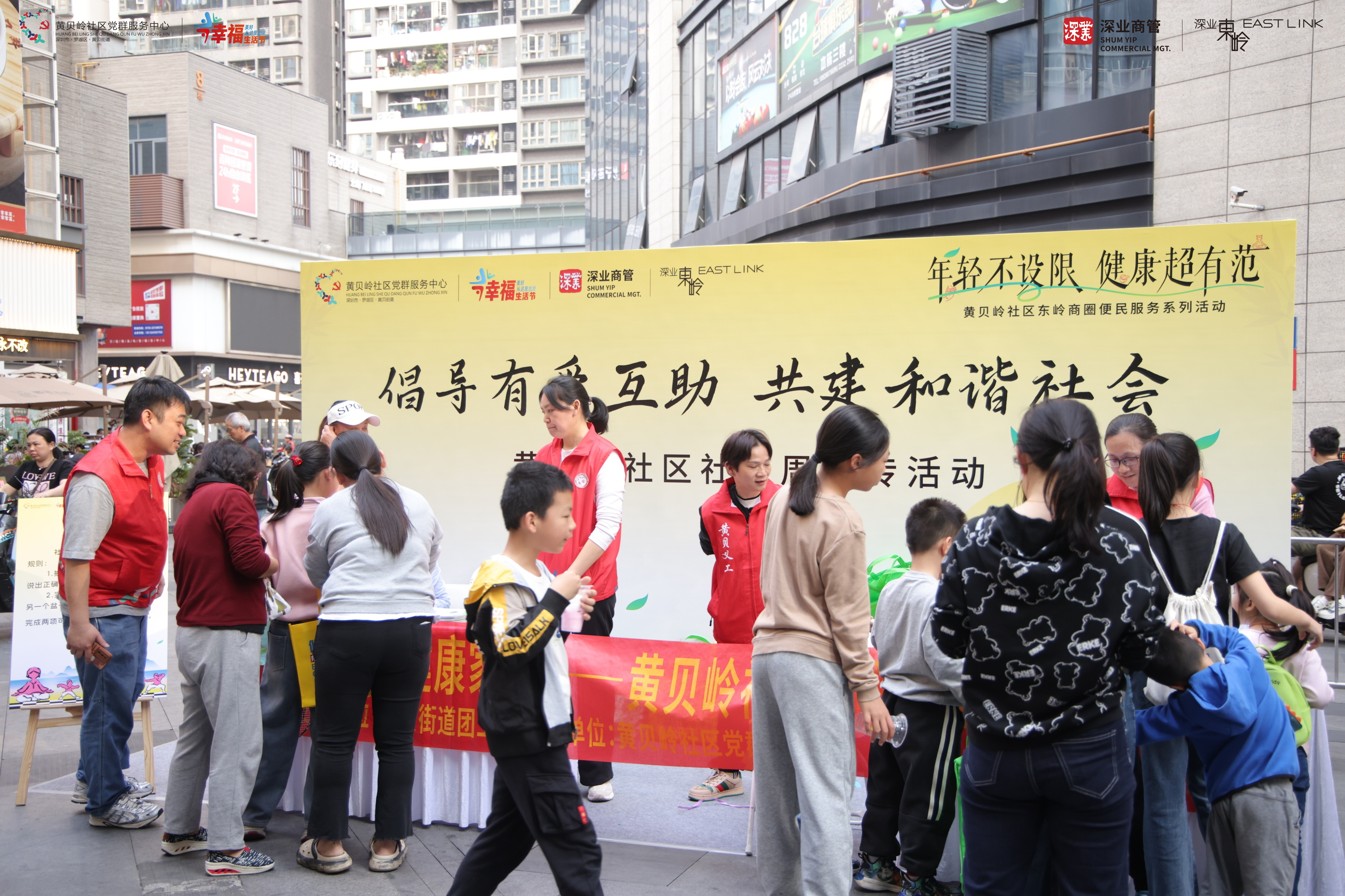 为进一步提高社会工作的影响力,树立社会工作专业形象,营造社会工作良好发展环境。3月22日下午,在黄贝岭社区党委指导下,由东西方社工服务社驻黄贝岭党群服务中心,深圳市温馨社工服务中心,深业商业管理有限公司携手辖区各商家,联合举办了以“倡导友爱互助 共建和谐社会”为主题的社工宣传周暨便民服务系列活动。