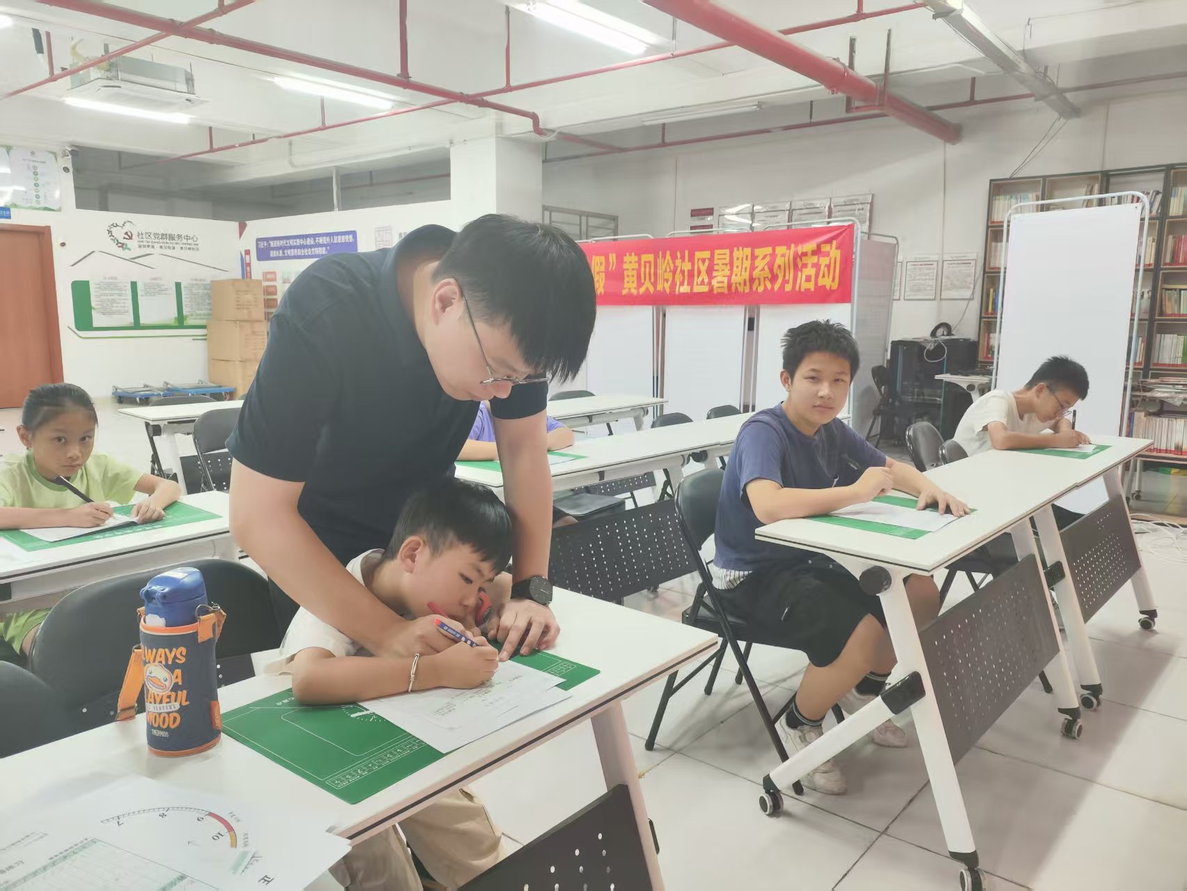 为丰富辖区青少年暑期生活,弘扬中华优秀传统文化,营造“以文化人、以和润心”的社区氛围。8月21日-27日在黄贝岭社区党委指导下,由东西方社工服务社驻黄贝岭社区党群服务中心携手社会资源,开展了为期五天的青少年硬笔书法培训活动。