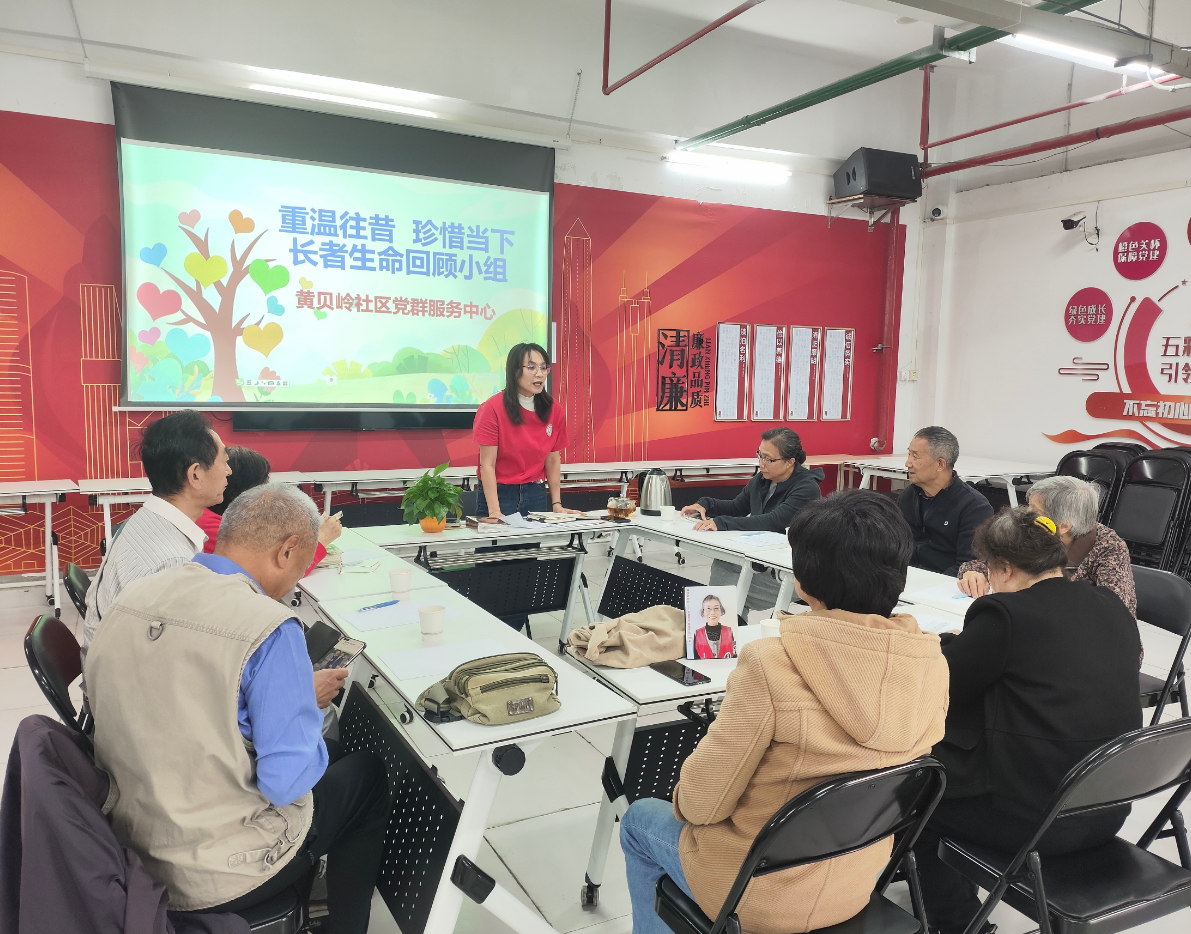 为建立良好的老年人社会支援网络,同时结合长者的需求,在黄贝岭社区党委的指导下,东西方驻黄贝岭社区党群服务中心的社工精心策划并开展“重温往昔 珍惜当下”长者生命回顾支持小组活动。生命回顾作为一种行之有效的老年社会工作方法,通过引导长者回顾人生经历,助力他们重新发现自我价值,有效缓解负面情绪,增强心理韧性。