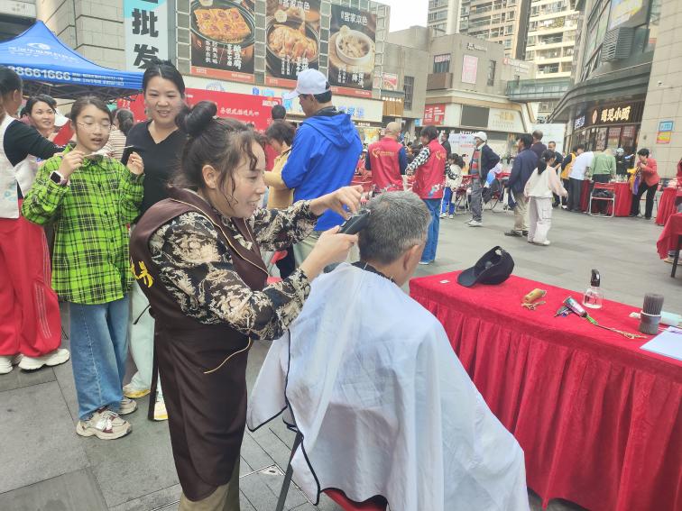 活动现场的文艺表演环节格外引人注目,由社区志愿者表演的架子鼓铿锵有力、节奏明快,一曲曲充满活力的演奏,为温馨的活动现场注入了澎湃的青春气息。鼓点敲响了新年的节奏,也奏响了代际间的和谐乐章,许多老人随着节拍轻轻点头,露出欣喜的笑容,场面温馨而热烈。现场分区明确,服务贴心,紧紧围绕老年群体的实际需求展开,在“健康检测区”,专业的医护人员耐心细致地为老人们进行免费的血压、血糖检测,并针对常见慢性病的日常管理提供一对一咨询与指导,让老人们在佳节前夕更安心地掌握自身健康状况。“便民服务区”前同样人气十足,义剪理发、新春写对联等实用服务吸引了众多长者参与,剪去旧岁烦忧,写下新年期盼。最受老人们欢迎的莫过于墨香四溢的“新春送福区”。书法爱好者们挥毫泼墨,笔走龙蛇,一副副寓意吉祥的春联和饱满的“福”字在他们笔下诞生。老人们接过墨迹未干、红艳艳的春联,脸上绽放出灿烂的笑容,连连道谢,现场氛围热烈而融洽。