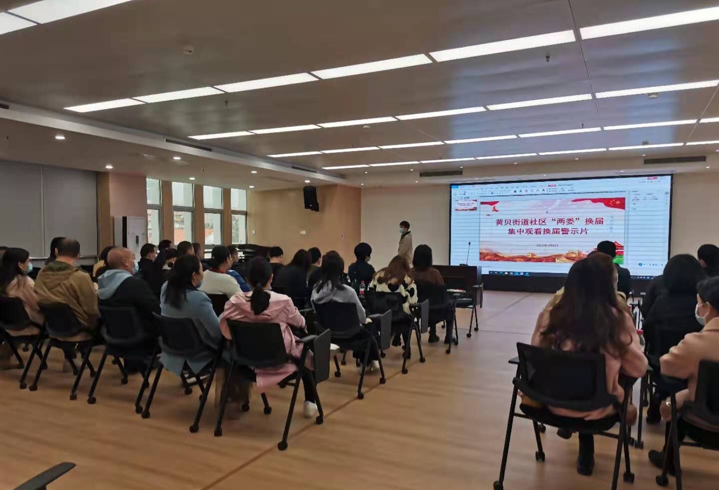 1月6日上午,黄贝街道党工委组织十个社区的工作人员在街道办事处7楼会议室观看换届纪律警示片,罗芳社区所有工作人员参加了会议。会上要求所有工作人员、换届候选人严格按照党章、党规和换届选举工作规程履行各自的职责并签订《严肃换届纪律承诺书》。
