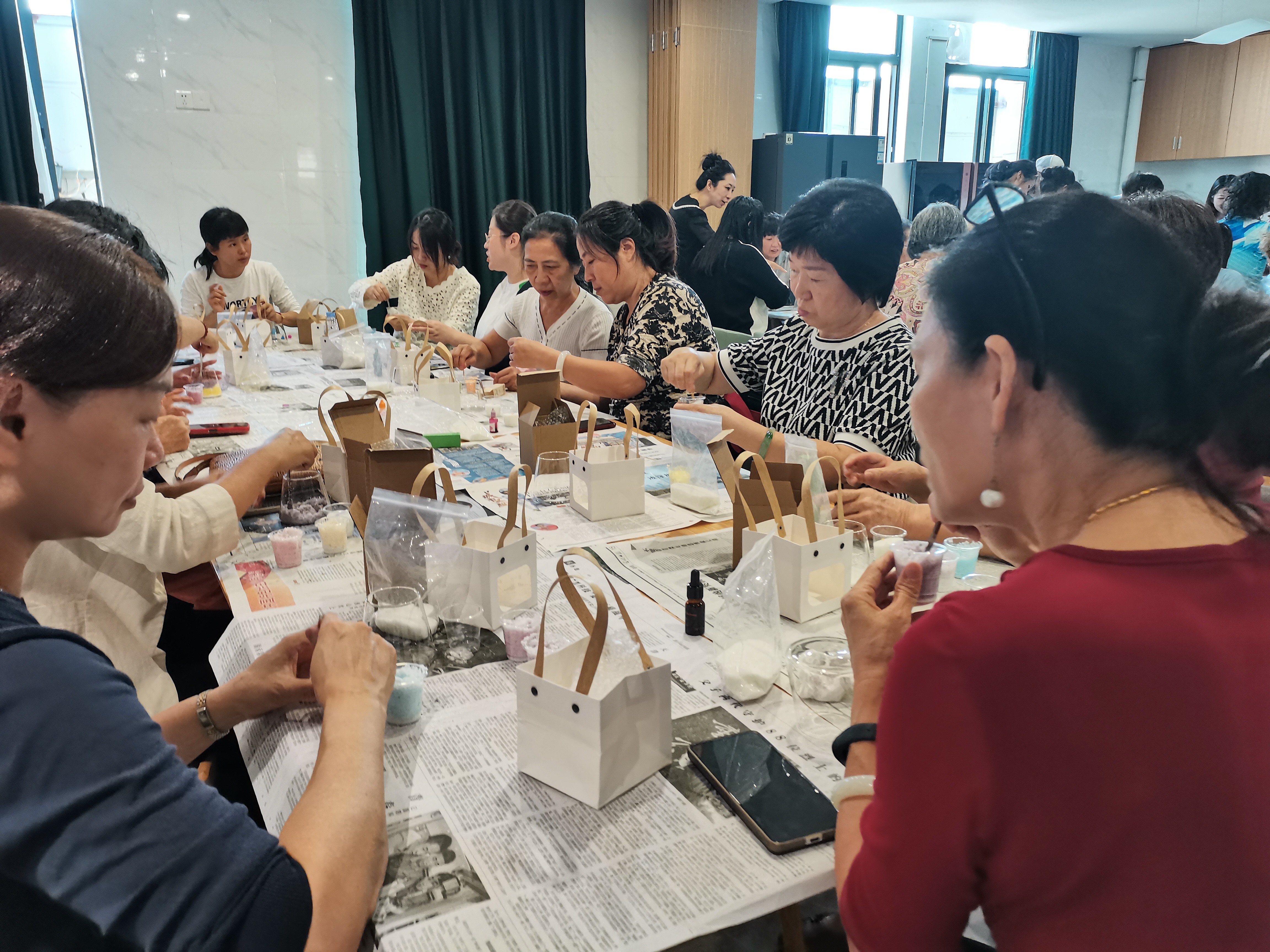 活动现场,专业老师耐心细致地讲解了制作过程和注意事项。居民们全神贯注地听讲,并在老师的指导下纷纷动手开始制作。他们精心挑选香味精油和颜料,用心调色、铺料、填压……每一个步骤都凝聚着他们的心血和创意。